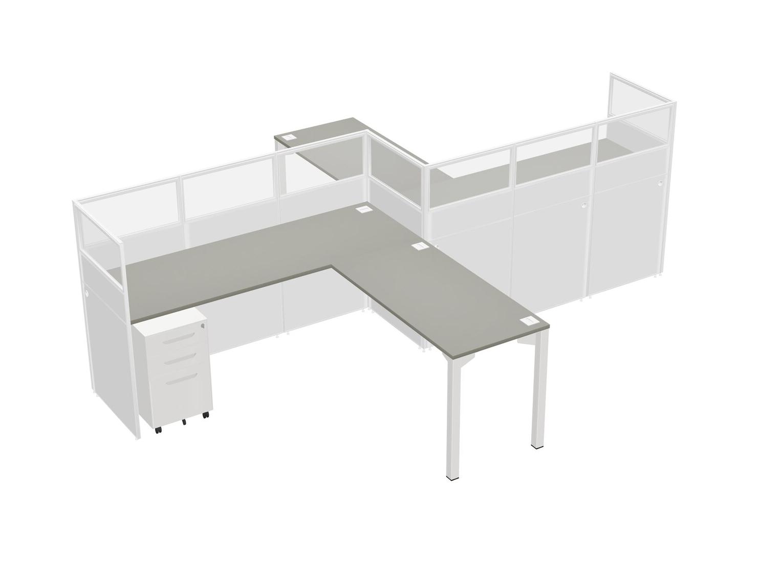 Grey Shadows L-shape Cubicle Workstations For 2 - Zigzag Formation + White Metal Mobile Drawers + Panel Return