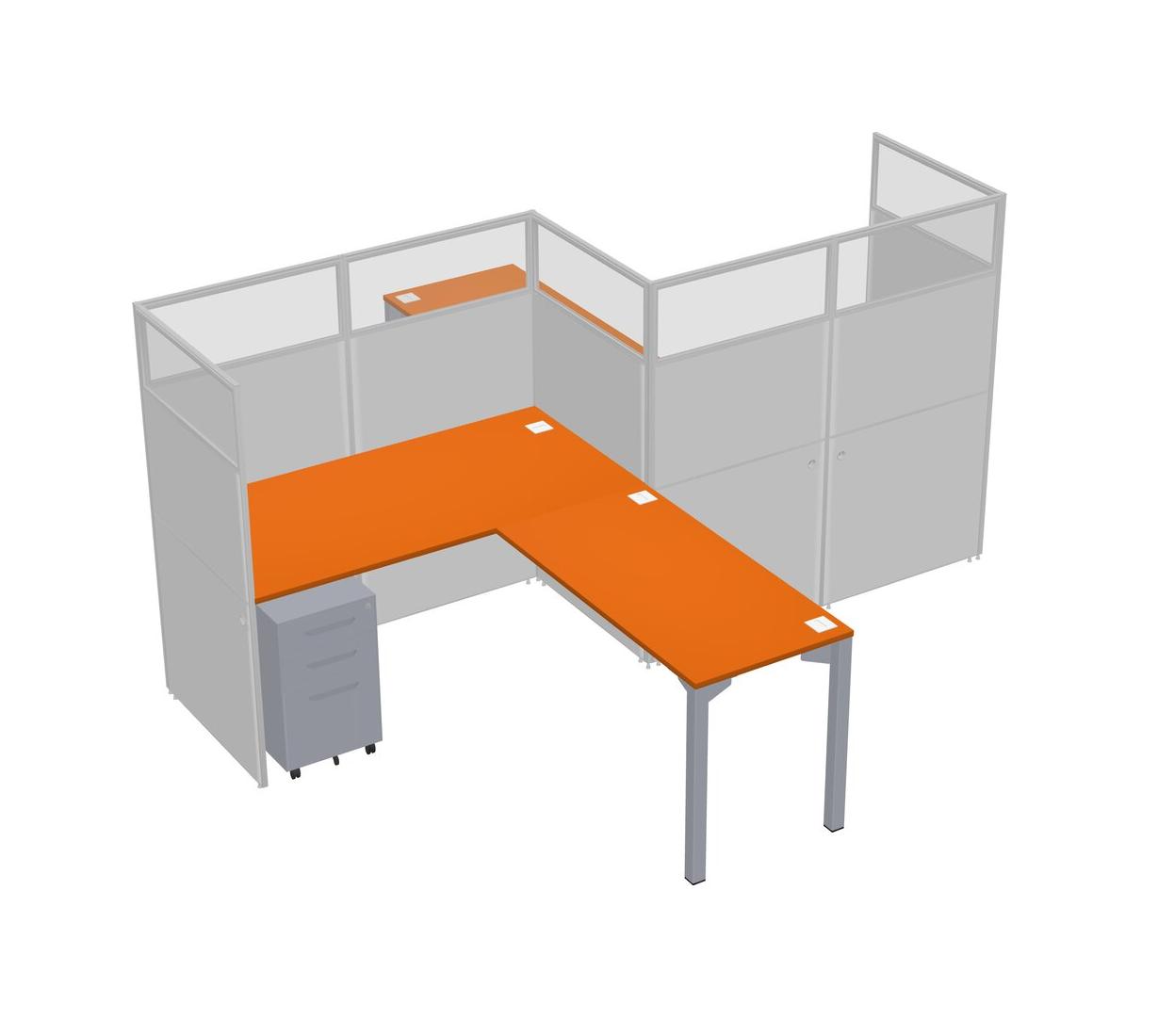 Orange L-shape Cubicle Workstations For 2 - Zigzag Formation + Grey Metal Mobile Drawers + Panel Return