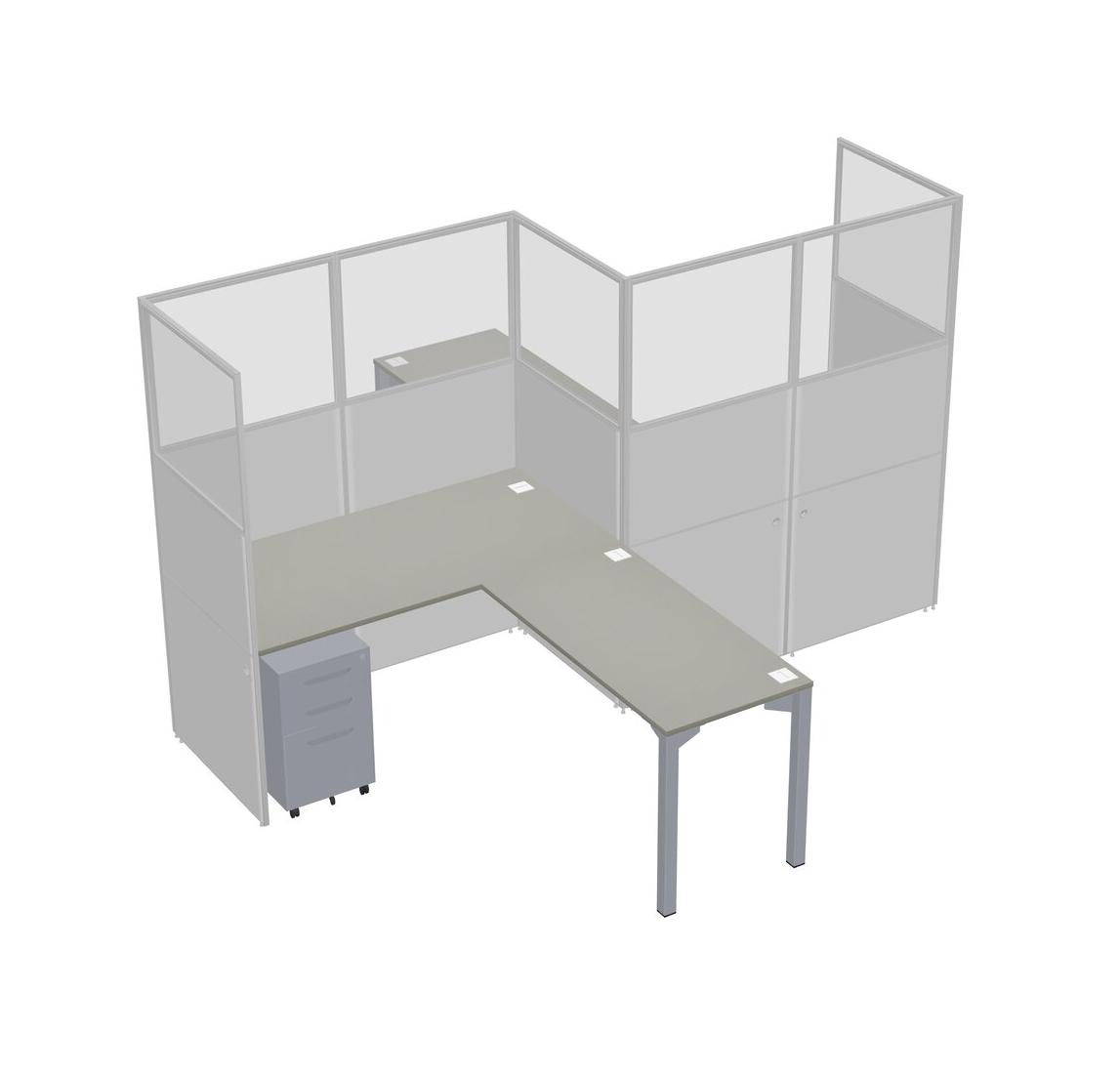 Grey Shadows L-shape Cubicle Workstations For 2 - Zigzag Formation + Grey Metal Mobile Drawers + Panel Return