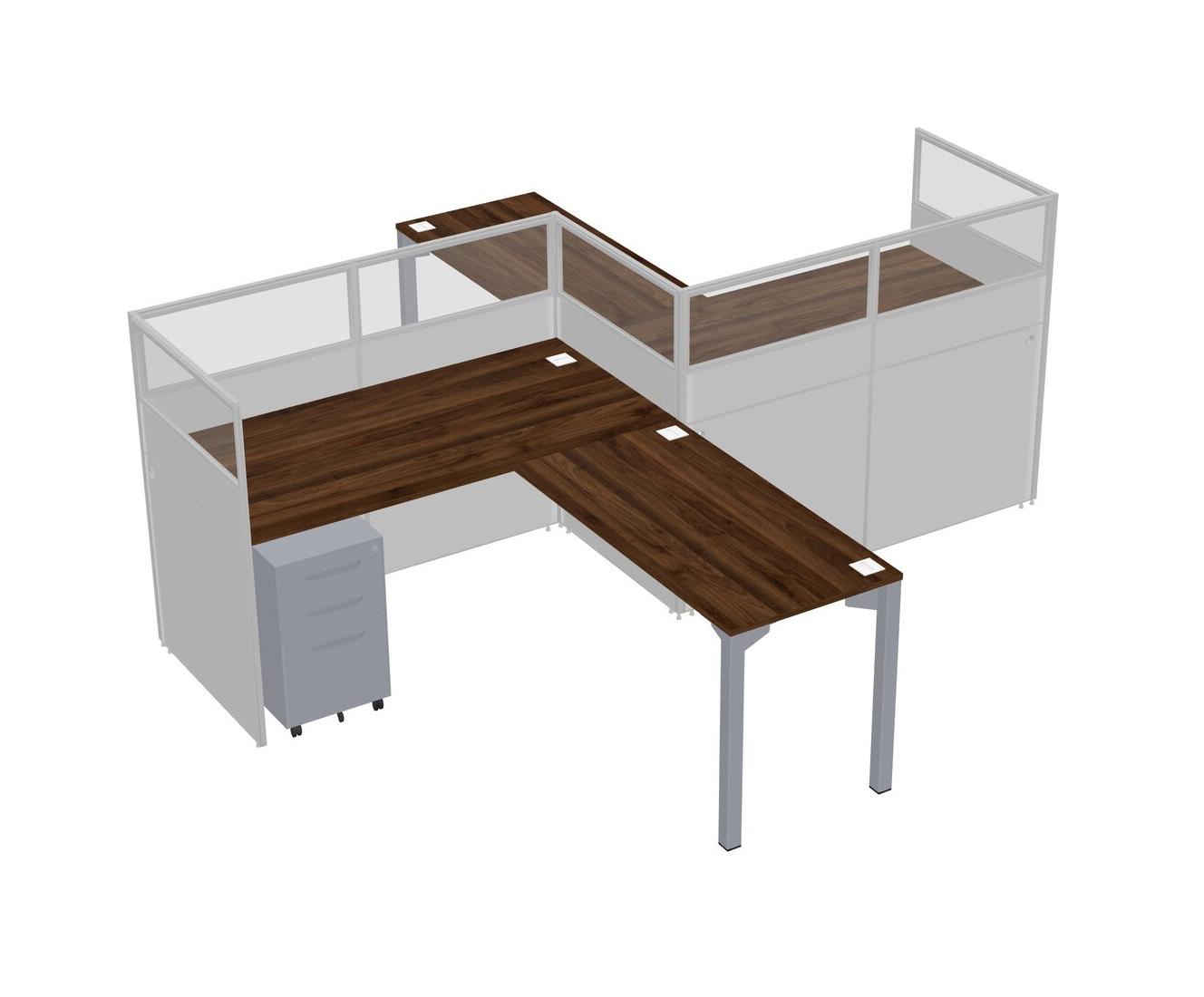 Columbia Walnut L-shape Cubicle Workstations For 2 - Zigzag Formation + Grey Metal Mobile Drawers + Panel Return