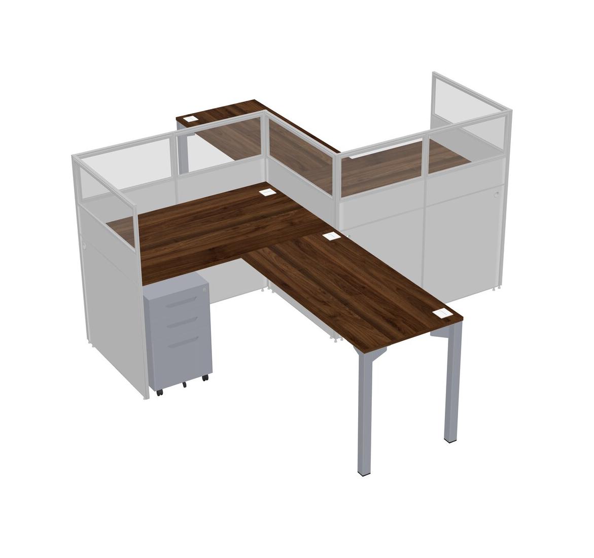 Columbia Walnut L-shape Cubicle Workstations For 2 - Zigzag Formation + Grey Metal Mobile Drawers + Panel Return