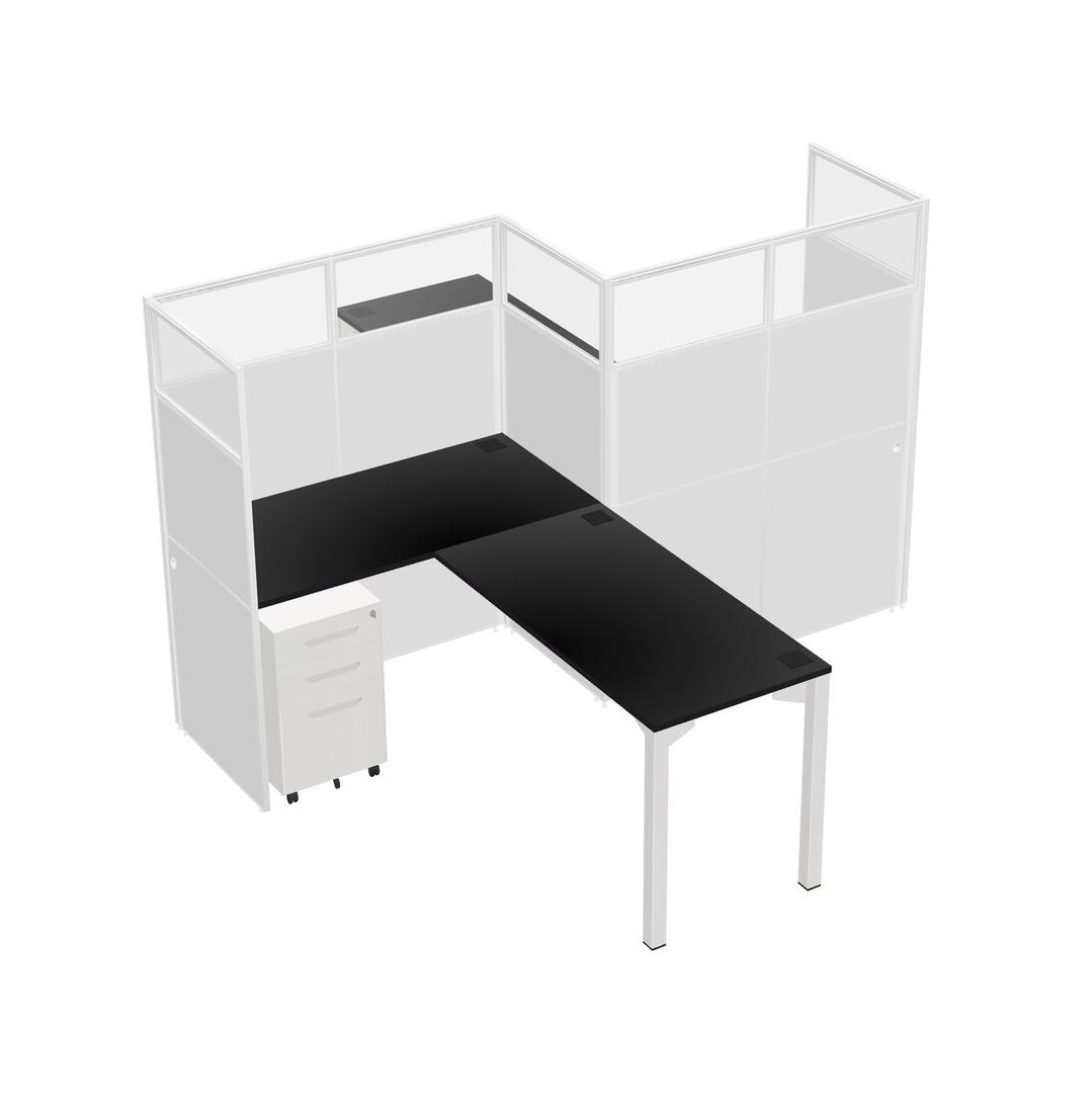Black L-shape Cubicle Workstations For 2 - Zigzag Formation + White Metal Mobile Drawers + Panel Return