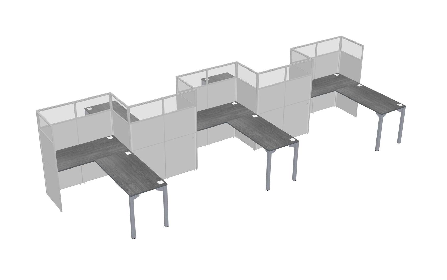 Grey L-shape Cubicle Workstations For 5 - Zigzag Formation + Panel Return