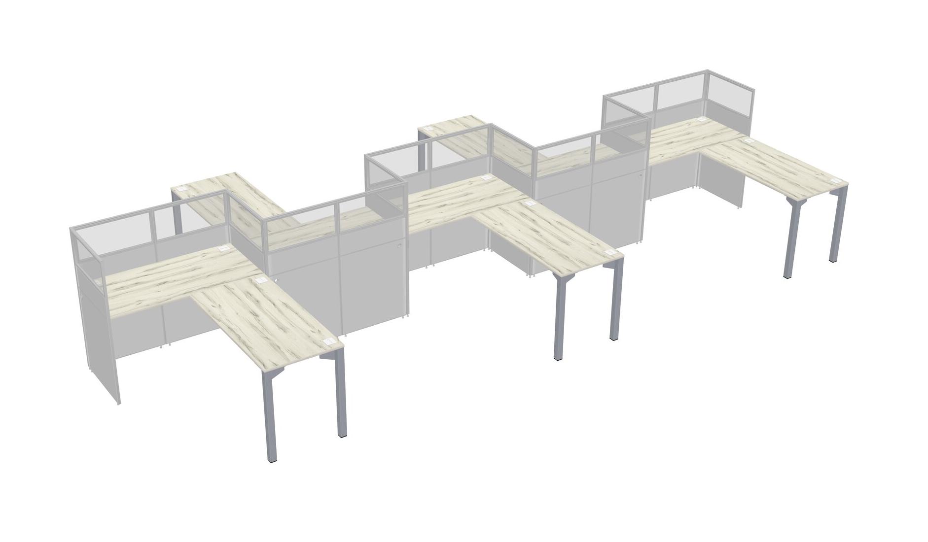 Heinne Holz L-shape Cubicle Workstations For 5 - Zigzag Formation + Panel Return
