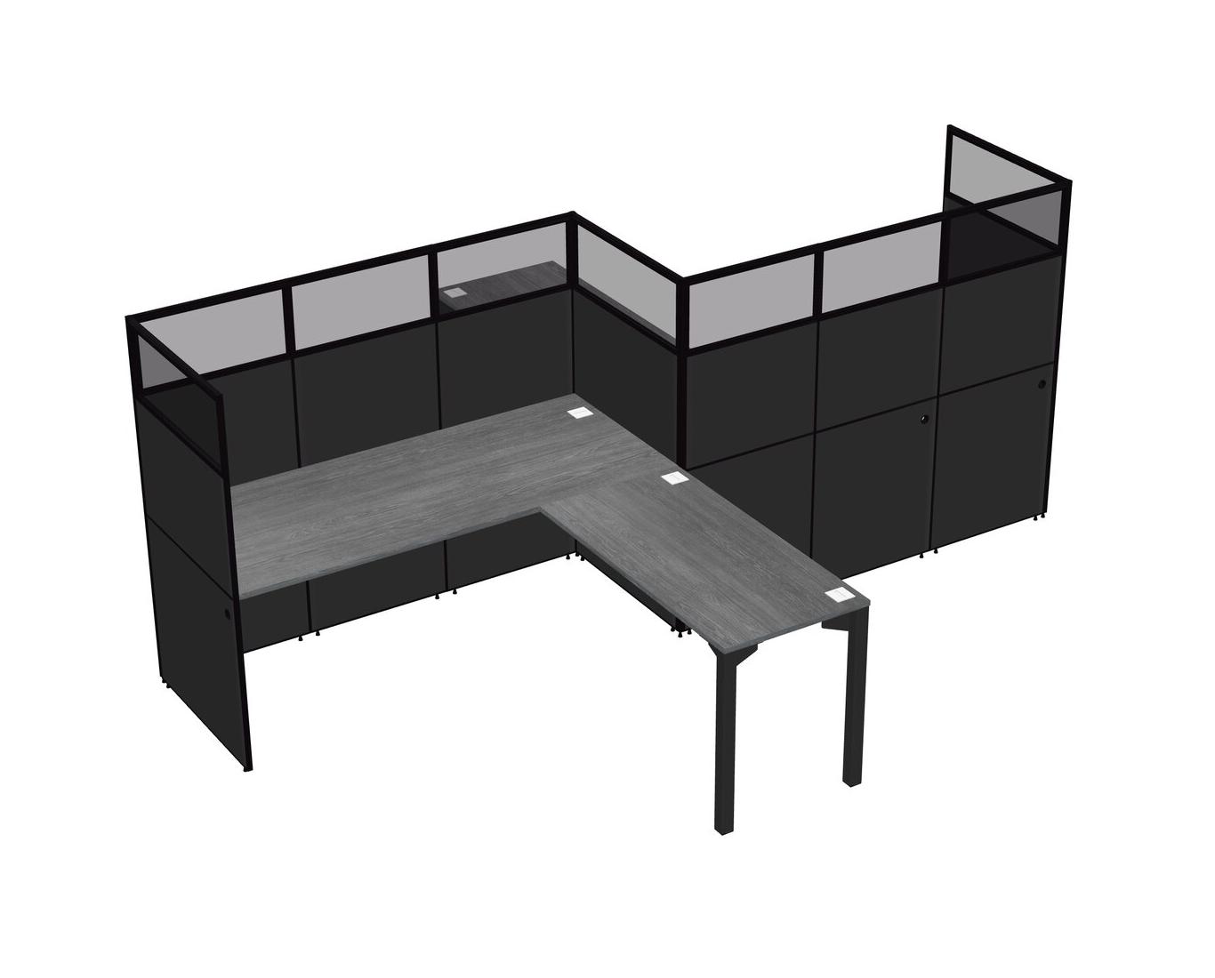 Grey L-shape Cubicle Workstations For 2 - Zigzag Formation + Panel Return