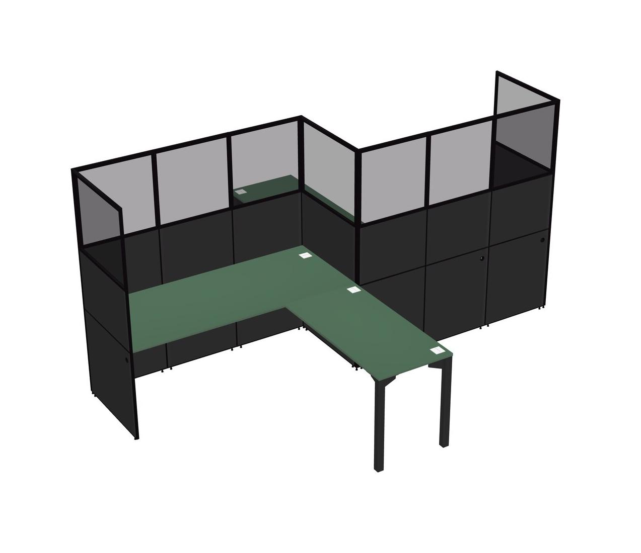 Green L-shape Cubicle Workstations For 2 - Zigzag Formation + Panel Return