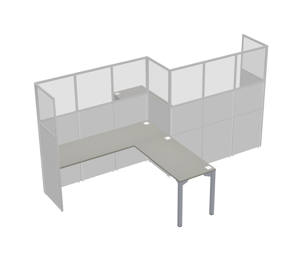 Grey Shadows L-shape Cubicle Workstations For 2 - Zigzag Formation + Panel Return