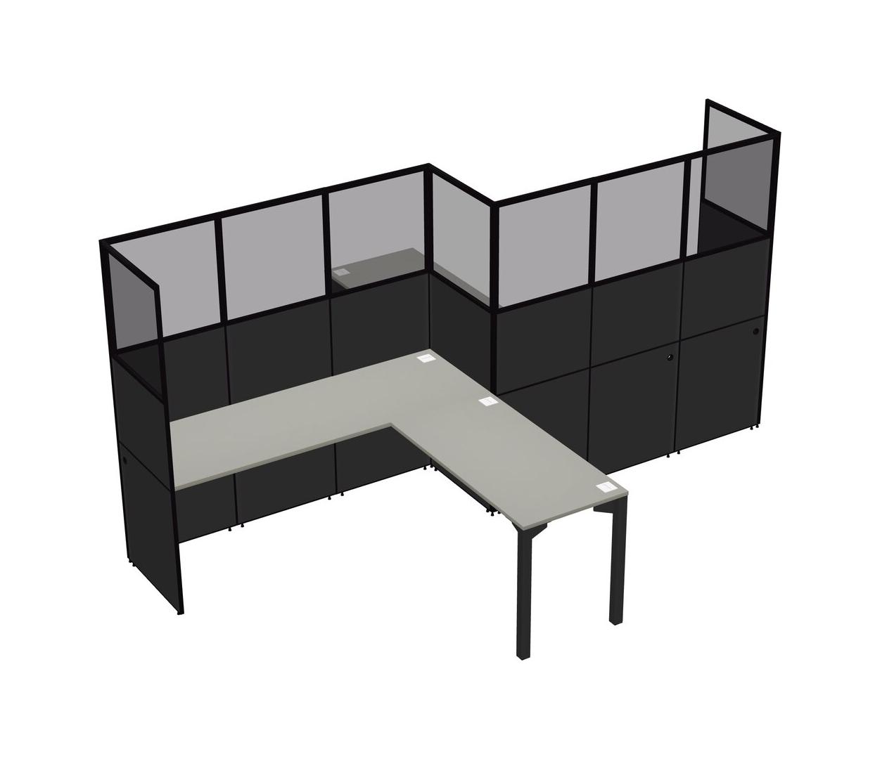 Grey Shadows L-shape Cubicle Workstations For 2 - Zigzag Formation + Panel Return