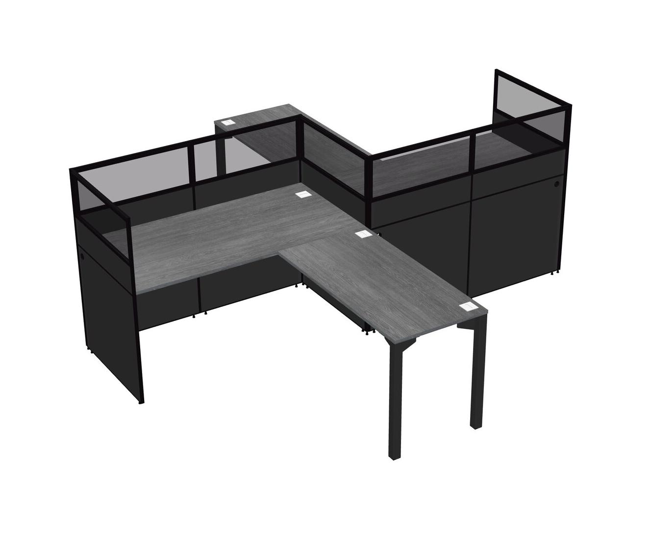 Grey L-shape Cubicle Workstations For 2 - Zigzag Formation + Panel Return