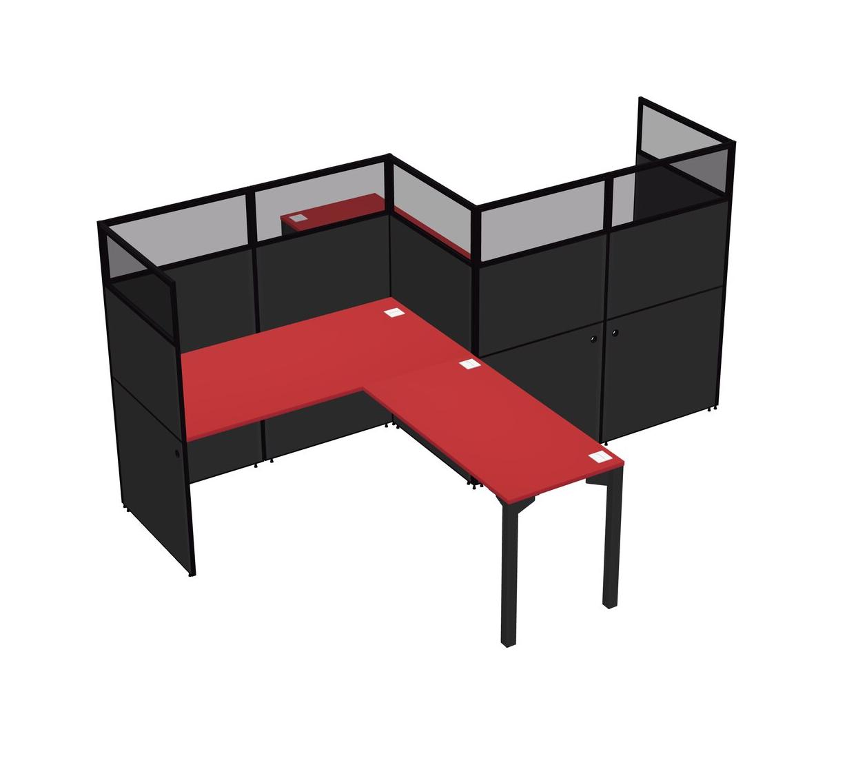Prism Red L-shape Cubicle Workstations For 2 - Zigzag Formation + Panel Return