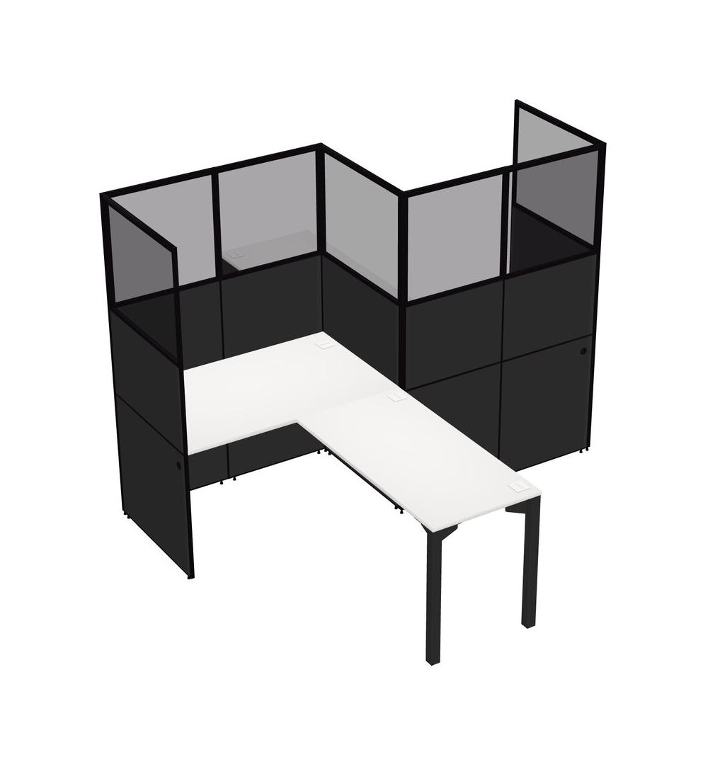 White L-shape Cubicle Workstations For 2 - Zigzag Formation + Panel Return