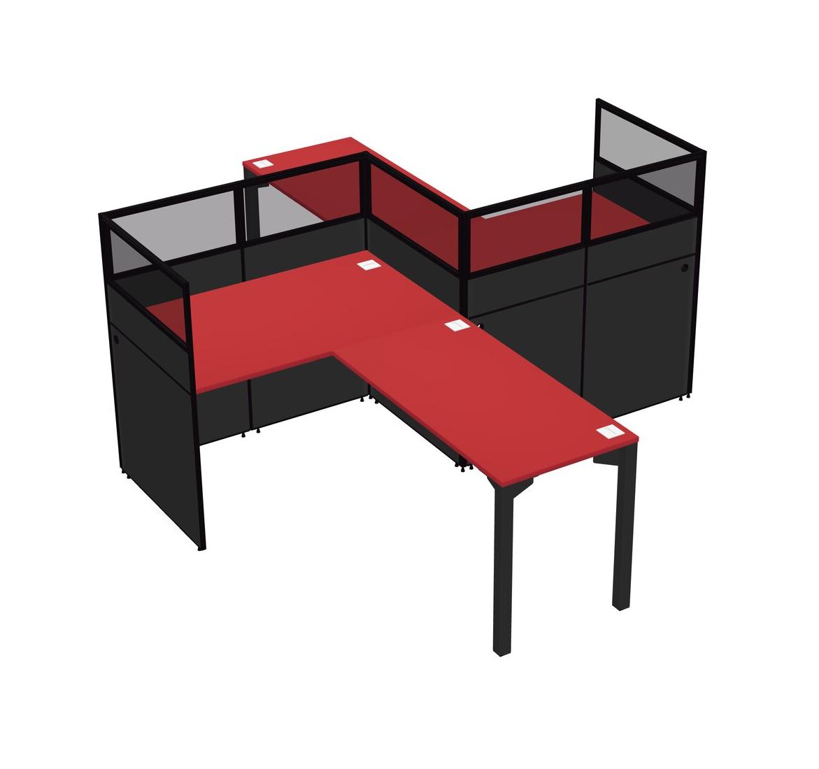 Prism Red L-shape Cubicle Workstations For 2 - Zigzag Formation + Panel Return