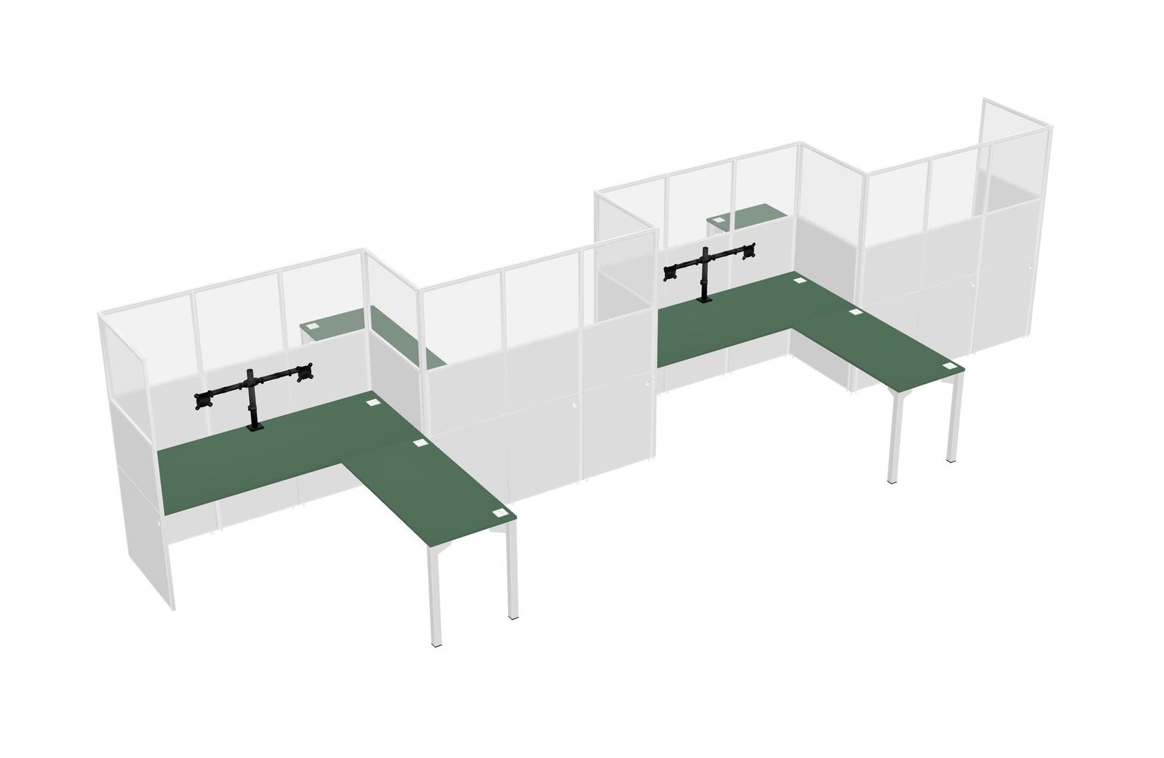 Green L-shape Cubicle Workstations For 4 - Zigzag Formation + Panel Return