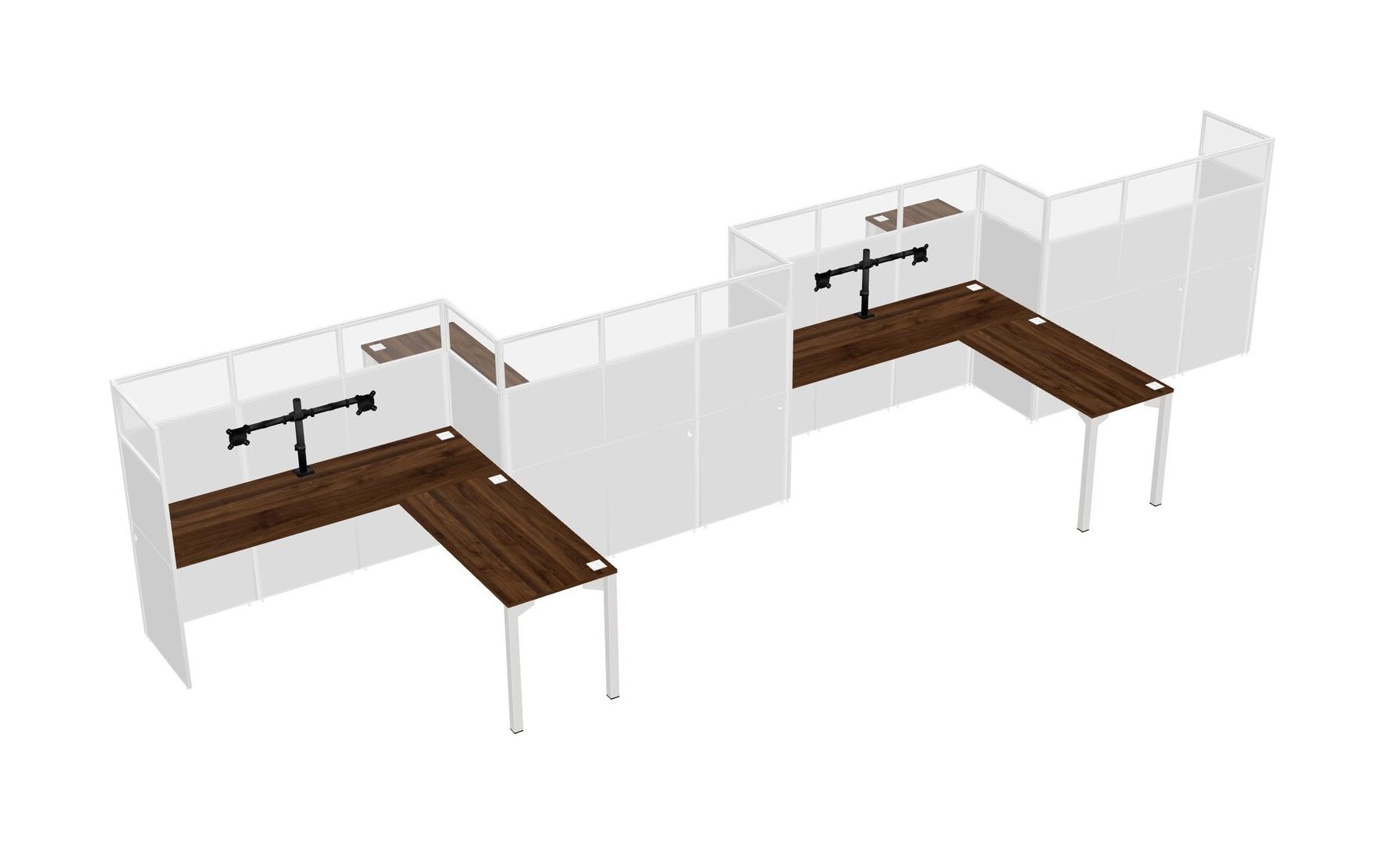 Columbia Walnut L-shape Cubicle Workstations For 4 - Zigzag Formation + Panel Return