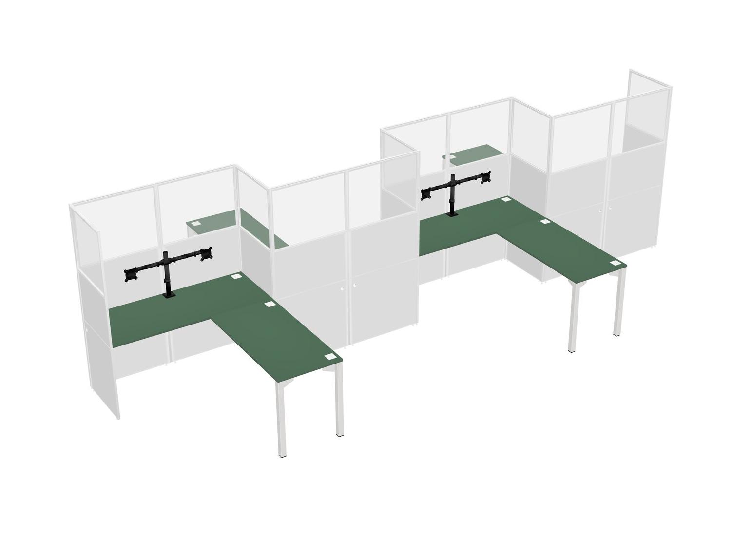 Green L-shape Cubicle Workstations For 4 - Zigzag Formation + Panel Return