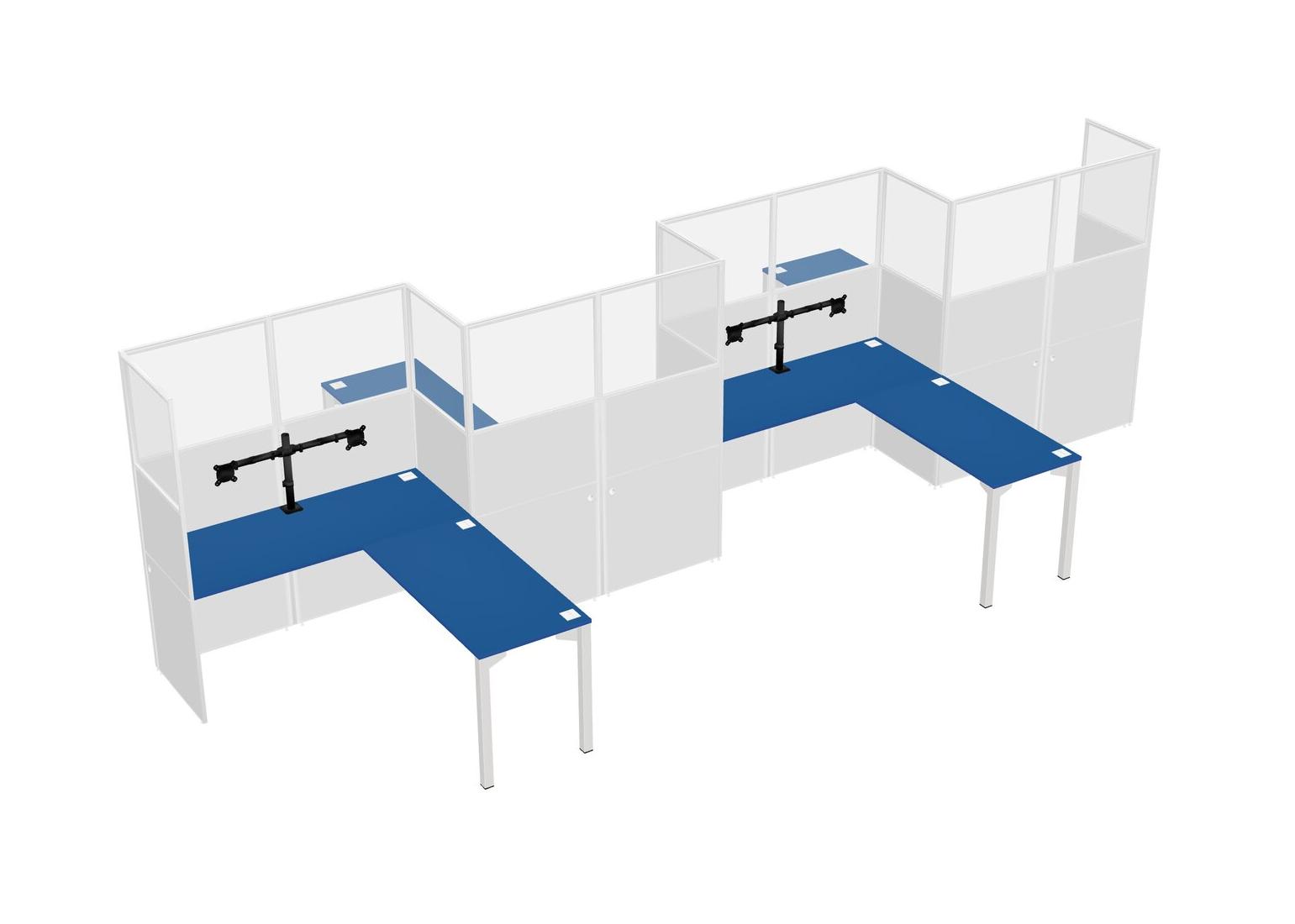 Prism Blue L-shape Cubicle Workstations For 4 - Zigzag Formation + Panel Return