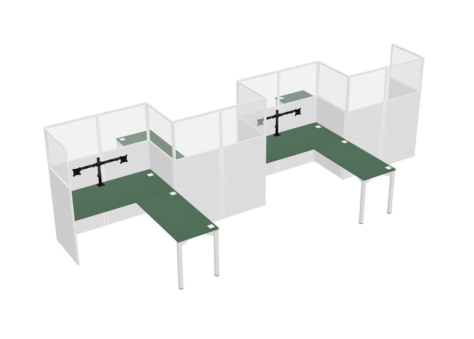 Green L-shape Cubicle Workstations For 4 - Zigzag Formation + Panel Return