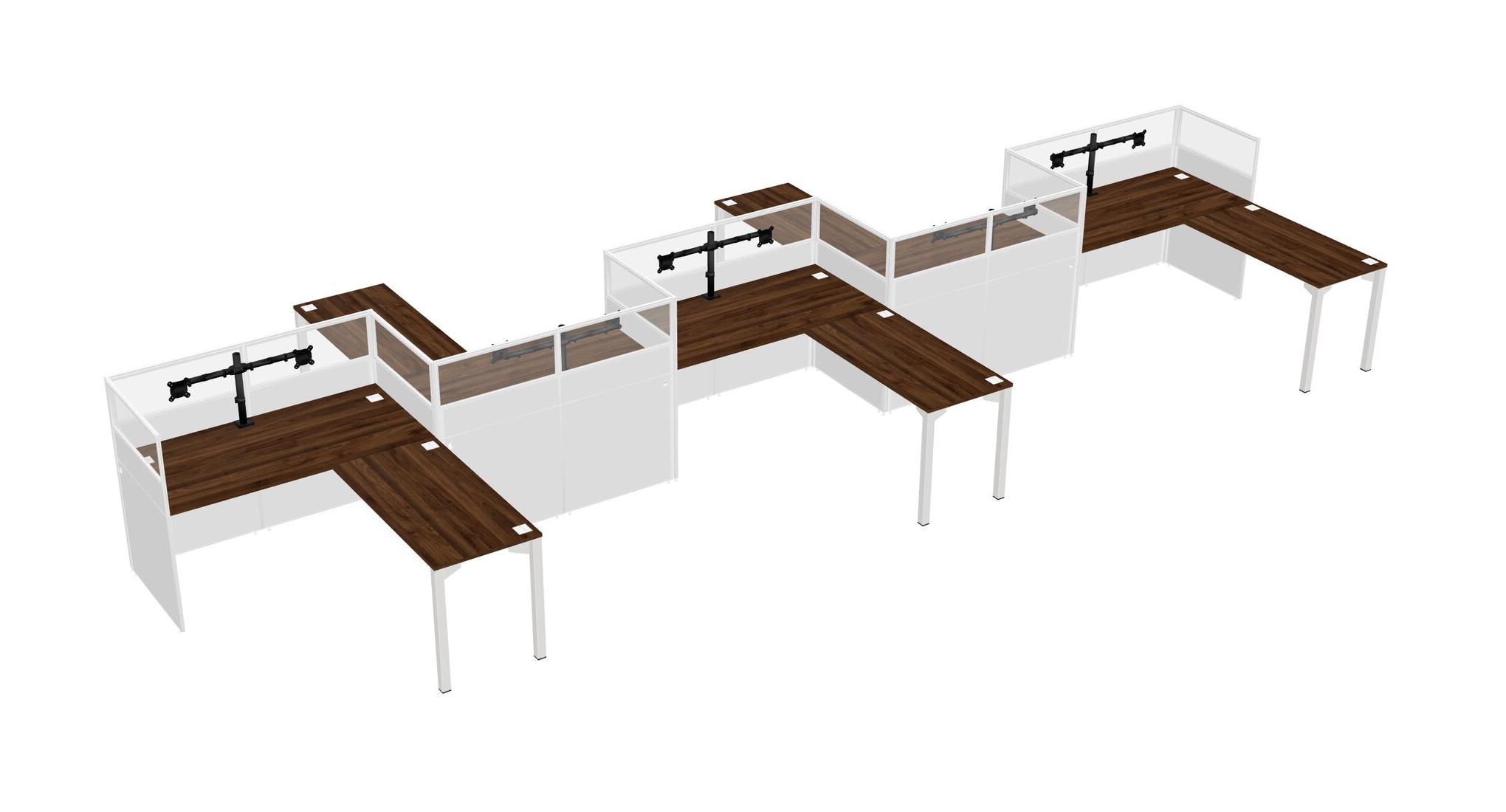 Columbia Walnut L-shape Cubicle Workstations For 5 - Zigzag Formation + Panel Return