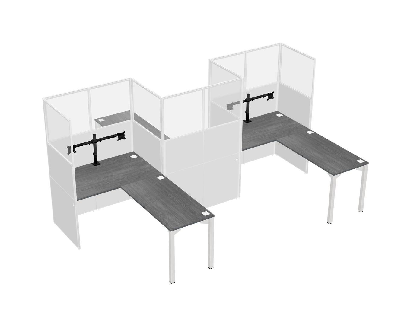 Grey L-shape Cubicle Workstations For 3 - Zigzag Formation + Panel Return