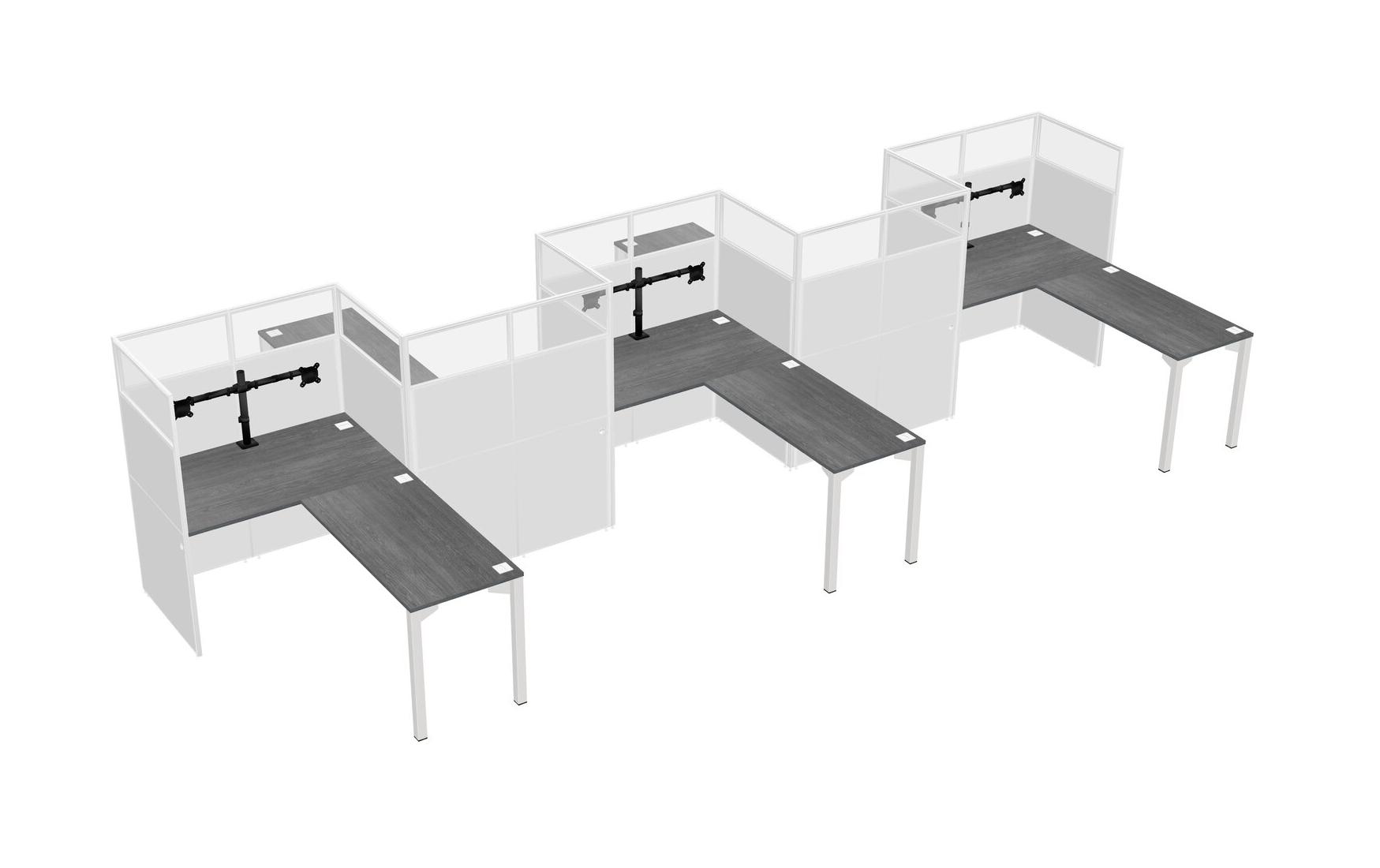 Grey L-shape Cubicle Workstations For 5 - Zigzag Formation + Panel Return
