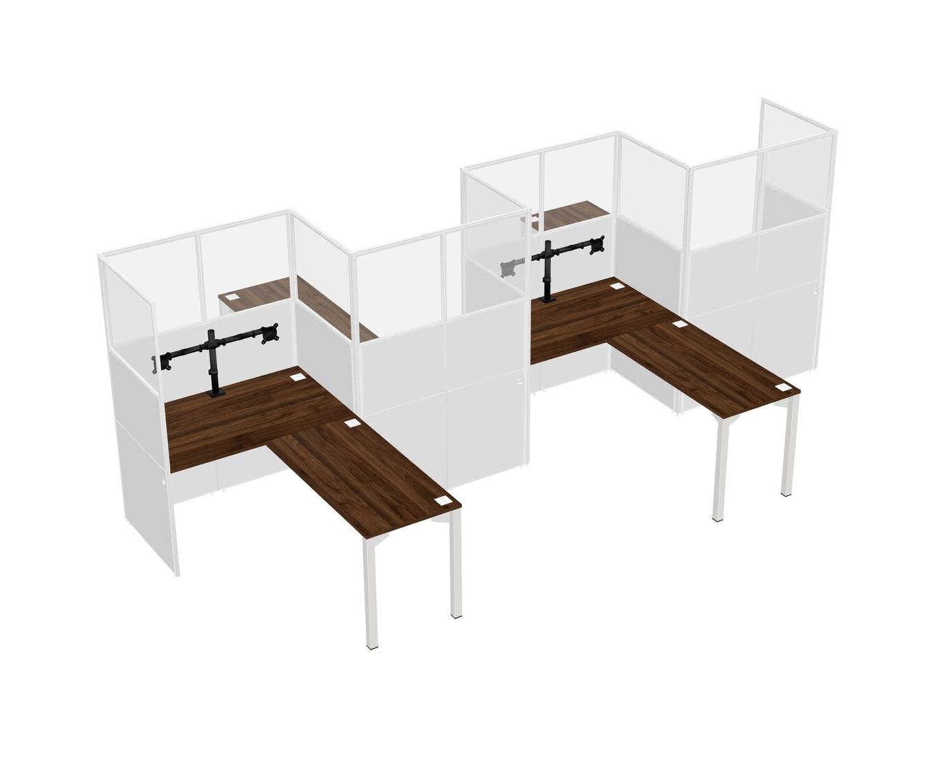 Columbia Walnut L-shape Cubicle Workstations For 4 - Zigzag Formation + Panel Return