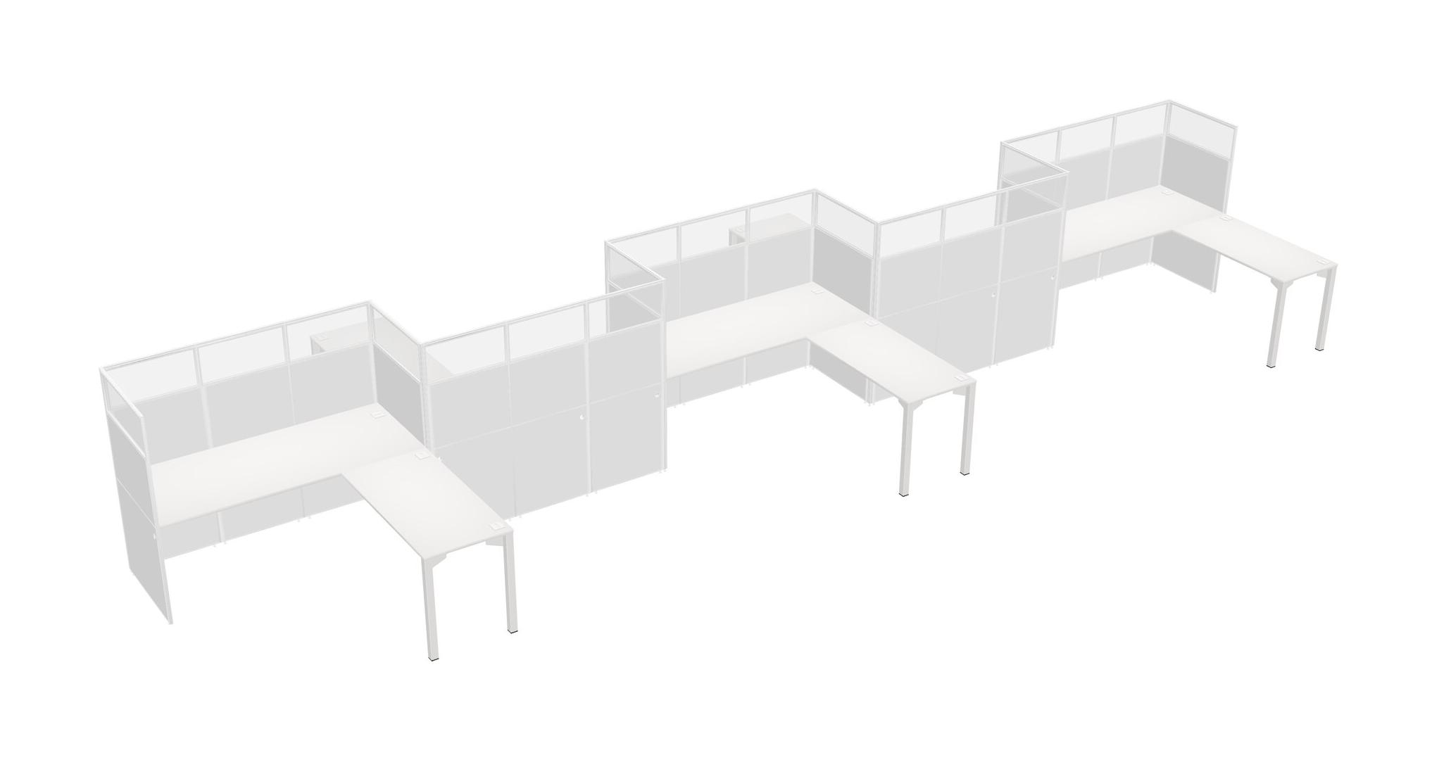 White L-shape Cubicle Workstations For 5 - Zigzag Formation + Panel Return