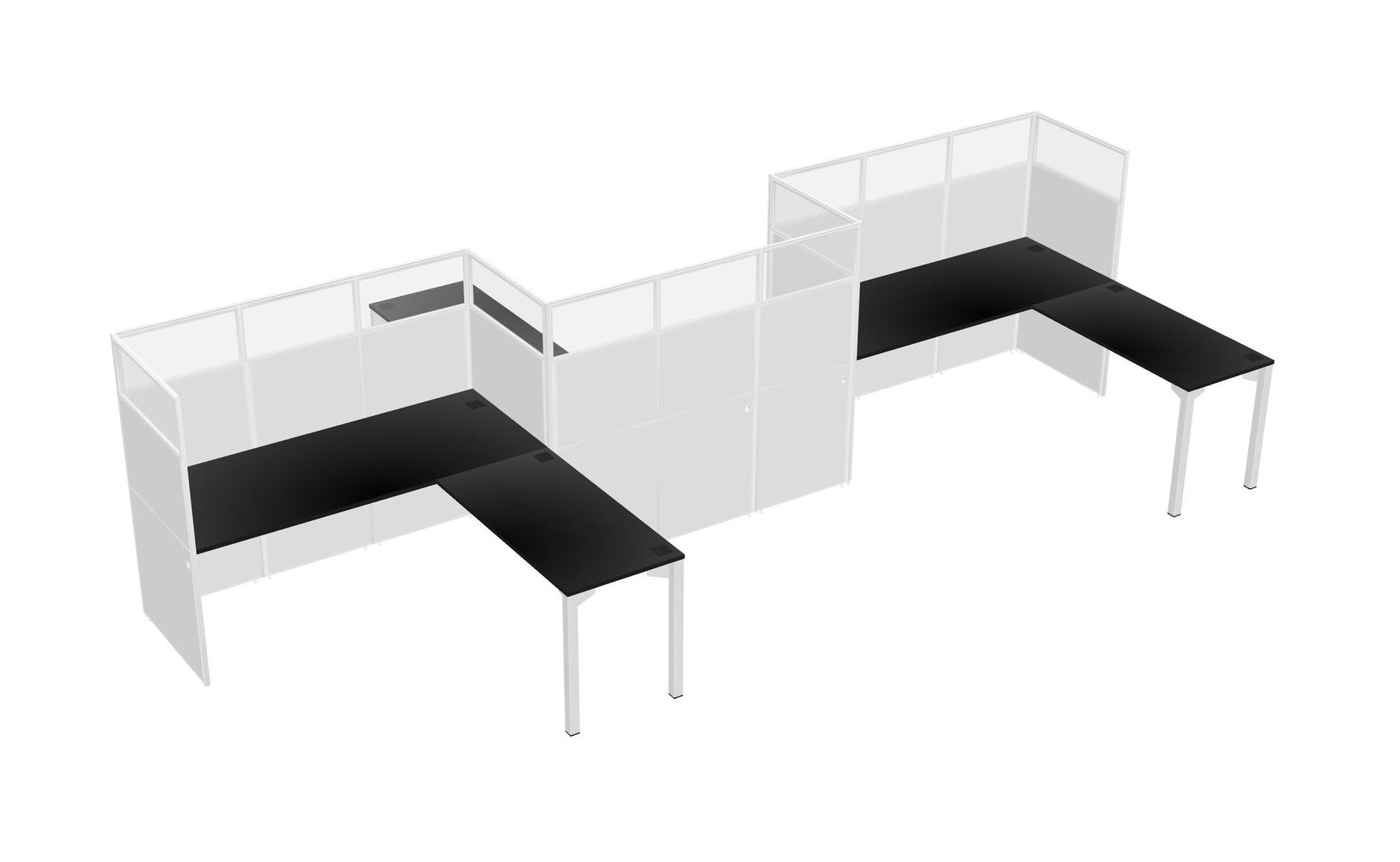 Black L-shape Cubicle Workstations For 3 - Zigzag Formation + Panel Return