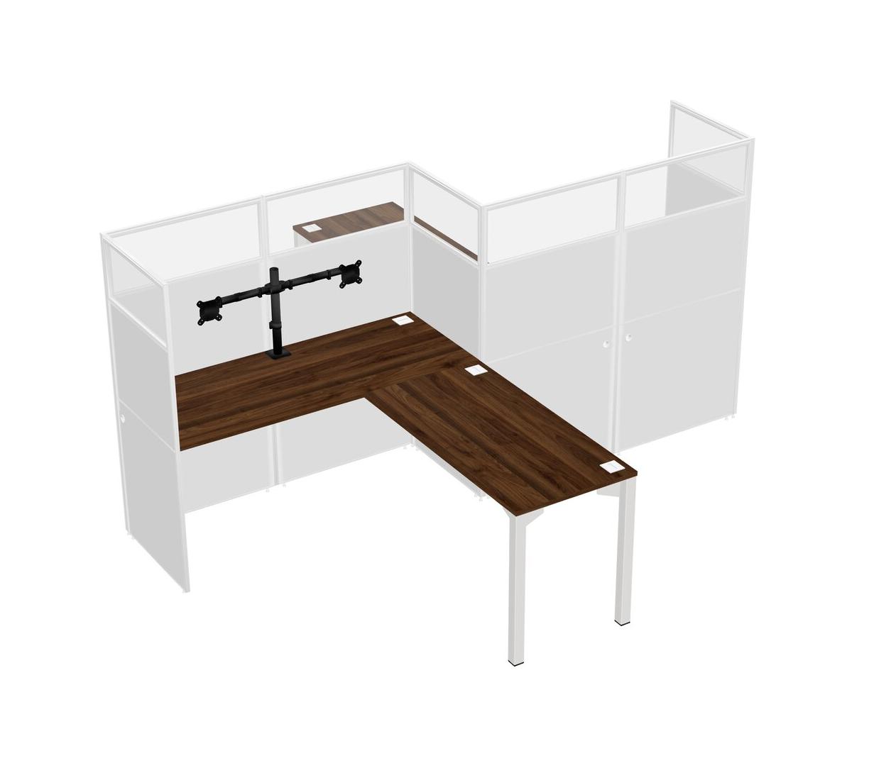 Columbia Walnut L-shape Cubicle Workstations For 2 - Zigzag Formation + Panel Return