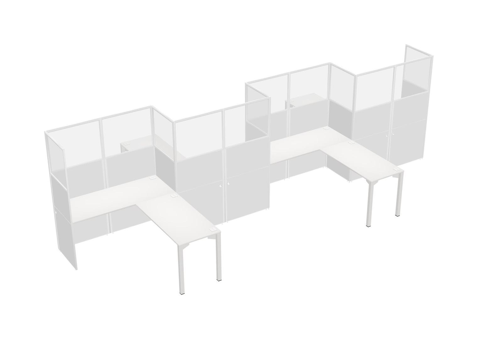 White L-shape Cubicle Workstations For 4 - Zigzag Formation + Panel Return
