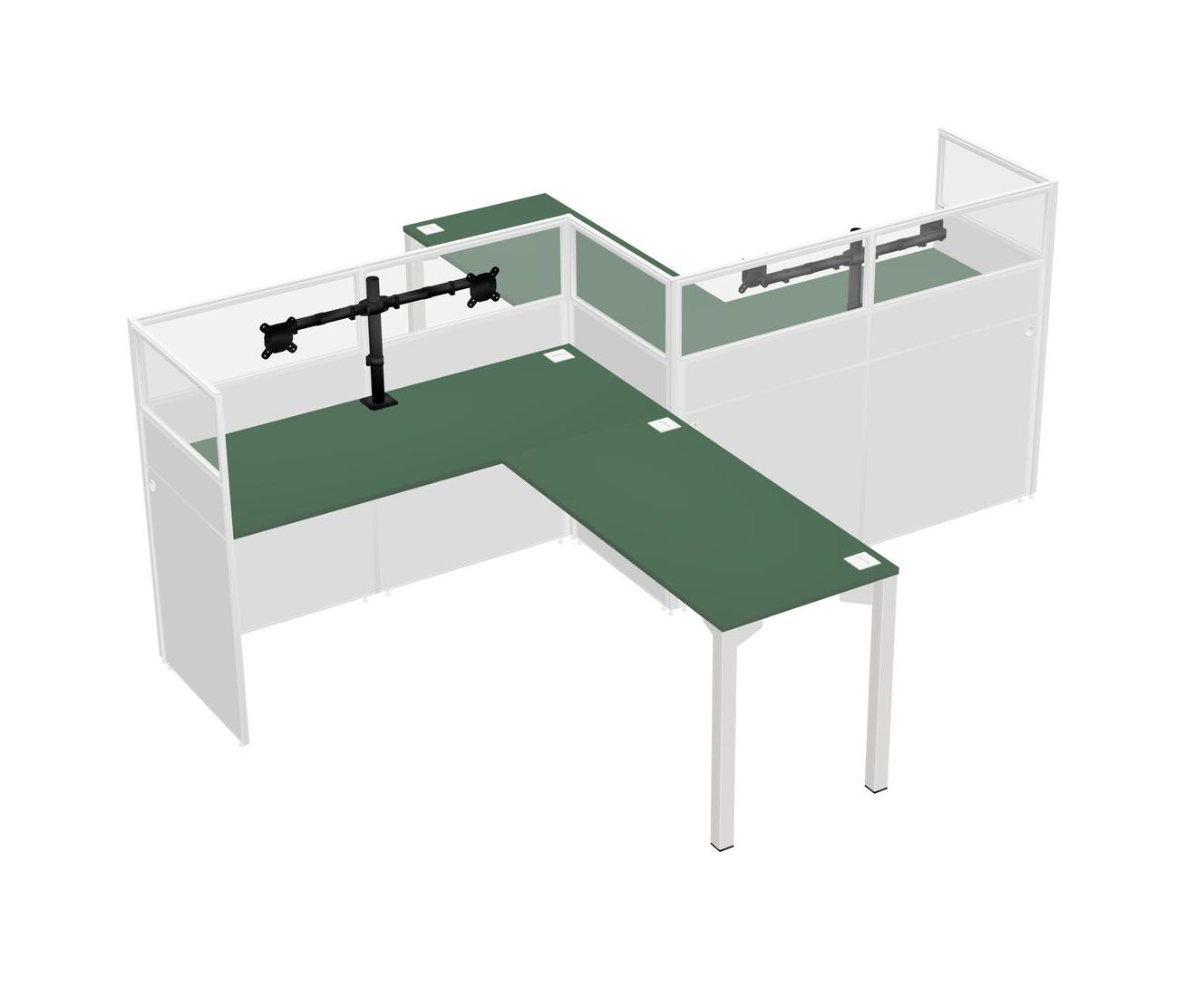 Green L-shape Cubicle Workstations For 2 - Zigzag Formation + Panel Return