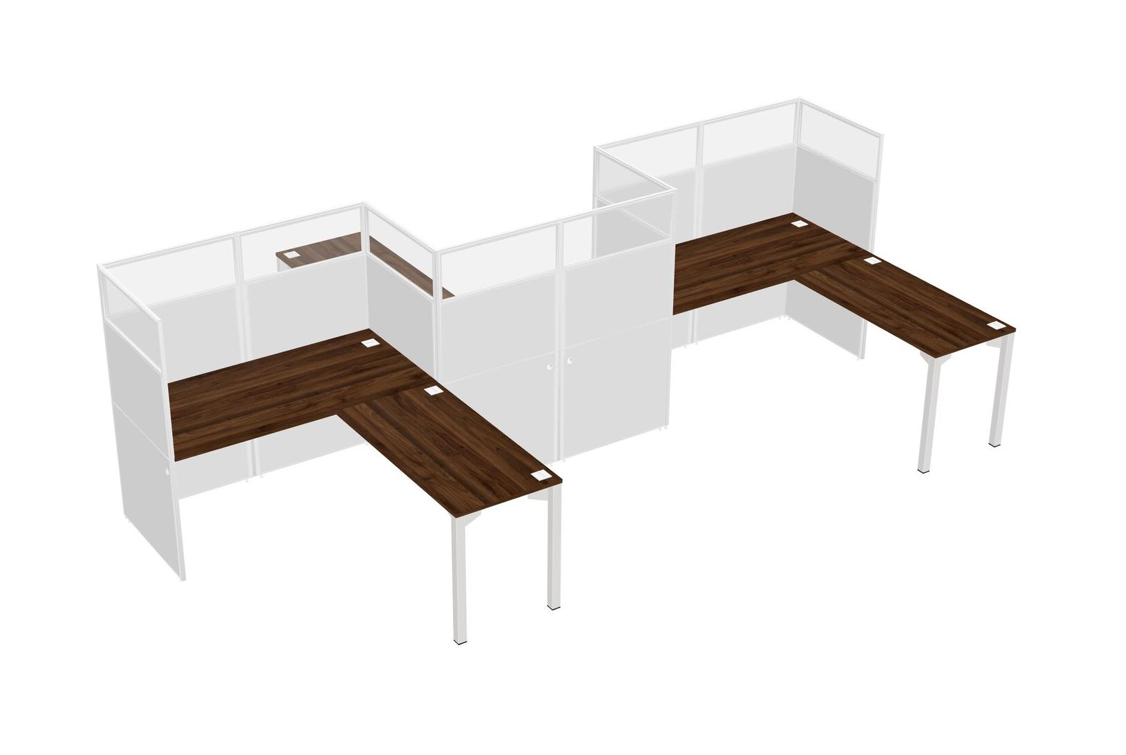 Columbia Walnut L-shape Cubicle Workstations For 3 - Zigzag Formation + Panel Return