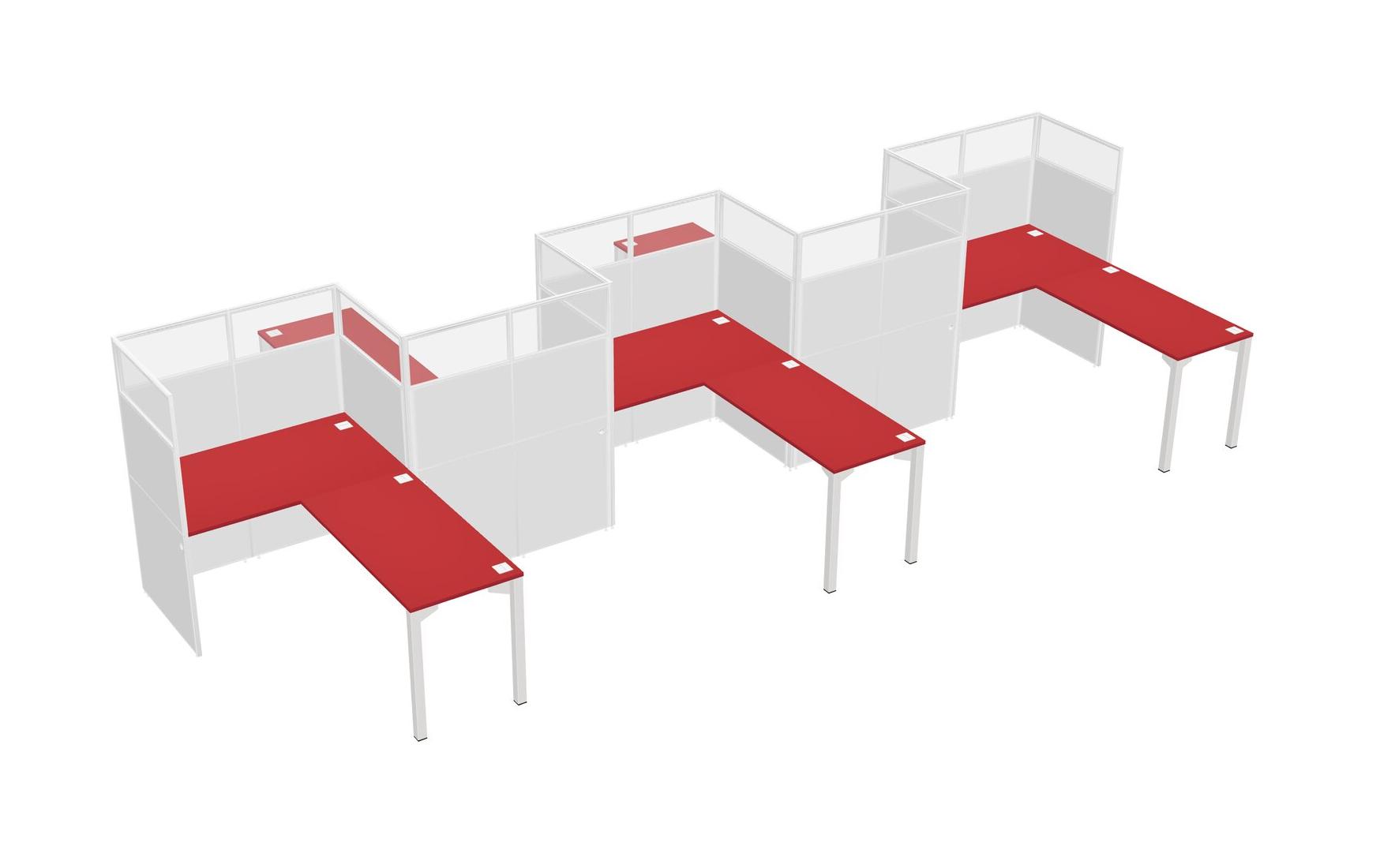 Prism Red L-shape Cubicle Workstations For 5 - Zigzag Formation + Panel Return