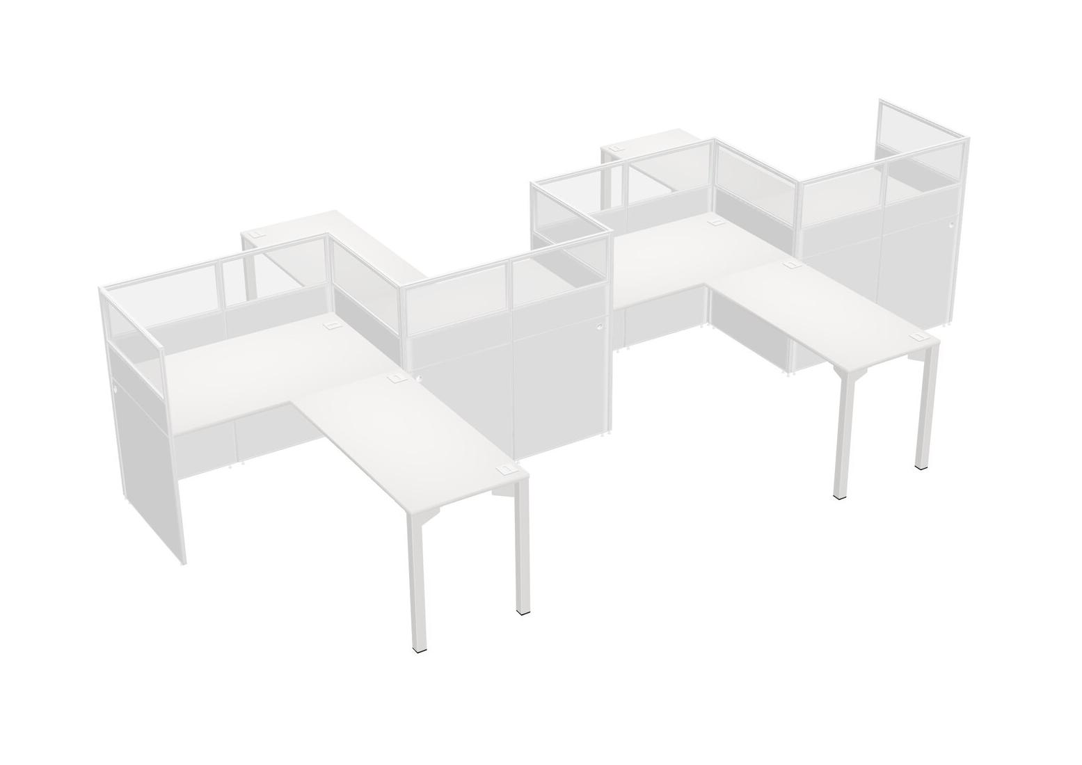 White L-shape Cubicle Workstations For 4 - Zigzag Formation + Panel Return