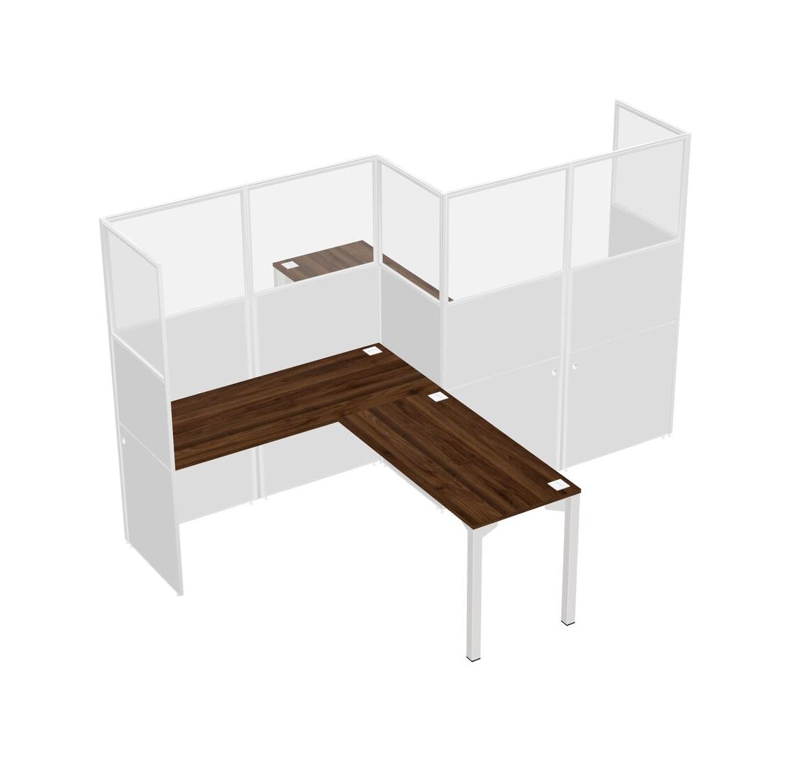 Columbia Walnut L-shape Cubicle Workstations For 2 - Zigzag Formation + Panel Return