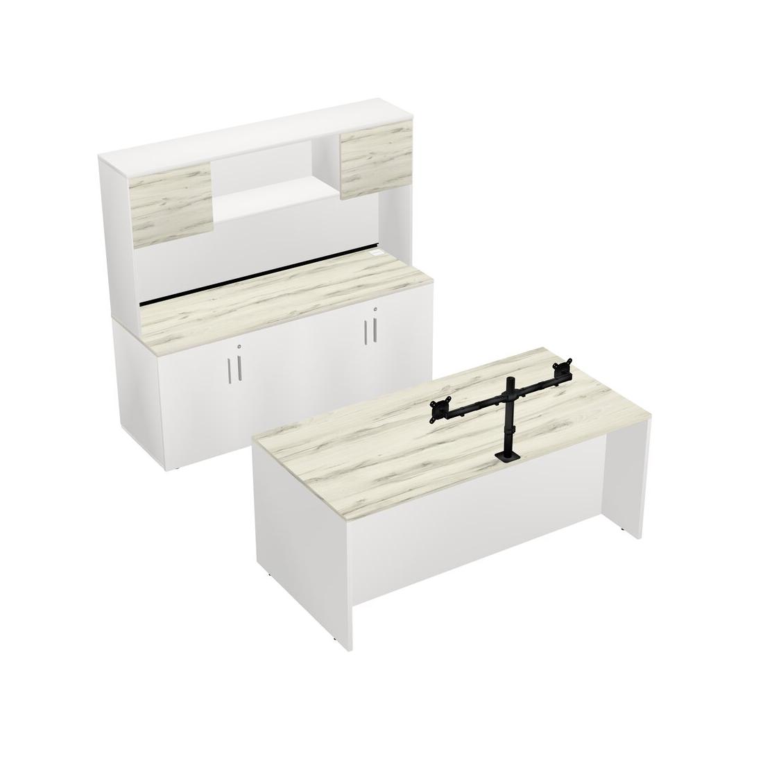 Heinne Holz Office Parallel Desk With Storage Cabinet + Wooden Mobile Drawers + Hutch + Monitor Arm (double Arms)