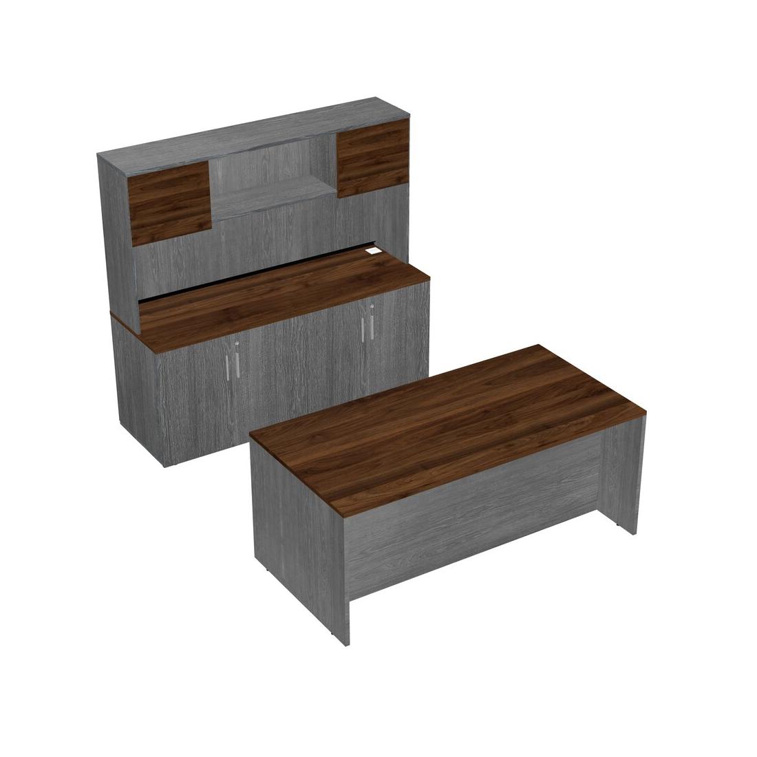 Columbia Walnut Office Parallel Desk With Storage Cabinet + Wooden Mobile Drawers + Hutch