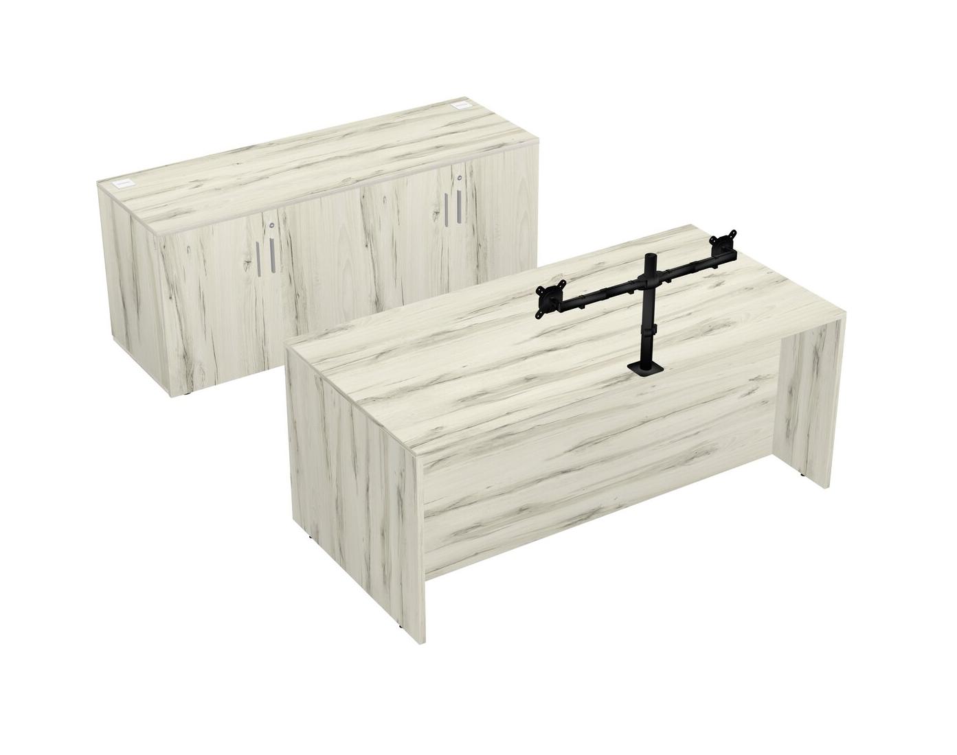Heinne Holz Office Parallel Desk With Storage Cabinet + Wooden Mobile Drawers + Monitor Arm (double Arms)
