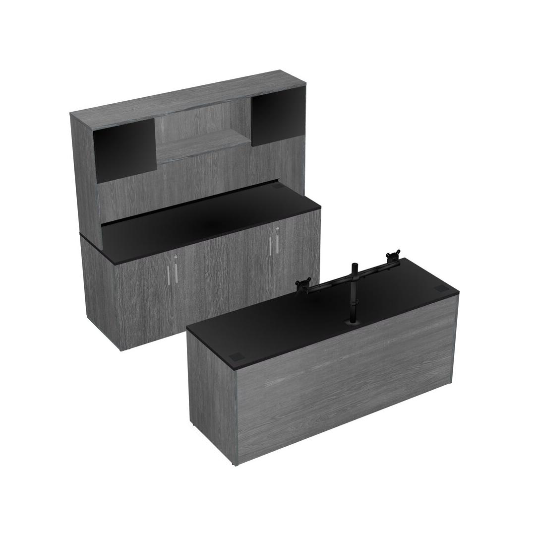 Black Office Parallel Desk With Storage Cabinet + Hutch + Monitor Arm (double Arms)