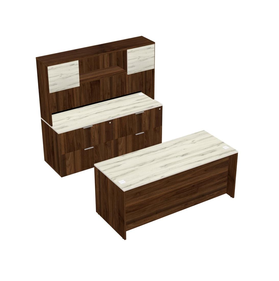 Heinne Holz Office Parallel Desk With Lateral File Cabinet + Wooden Mobile Drawers + Hutch