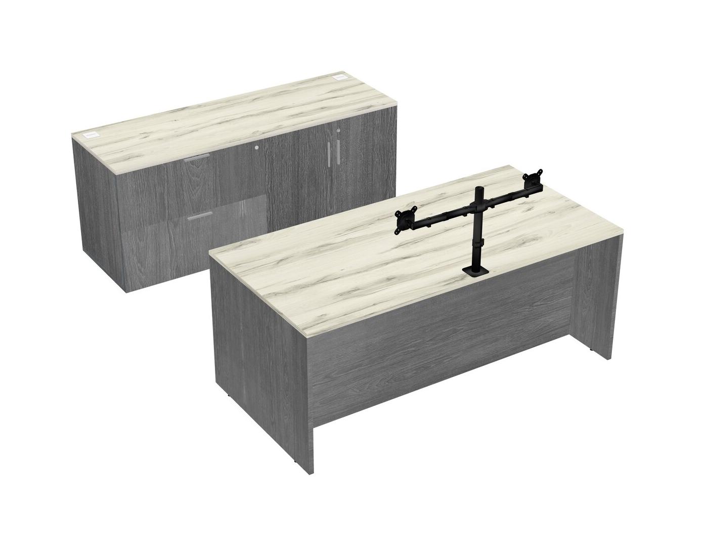 Heinne Holz Office Parallel Desk With Lateral Storage Combo + Wooden Mobile Drawers + Monitor Arm (double Arms)