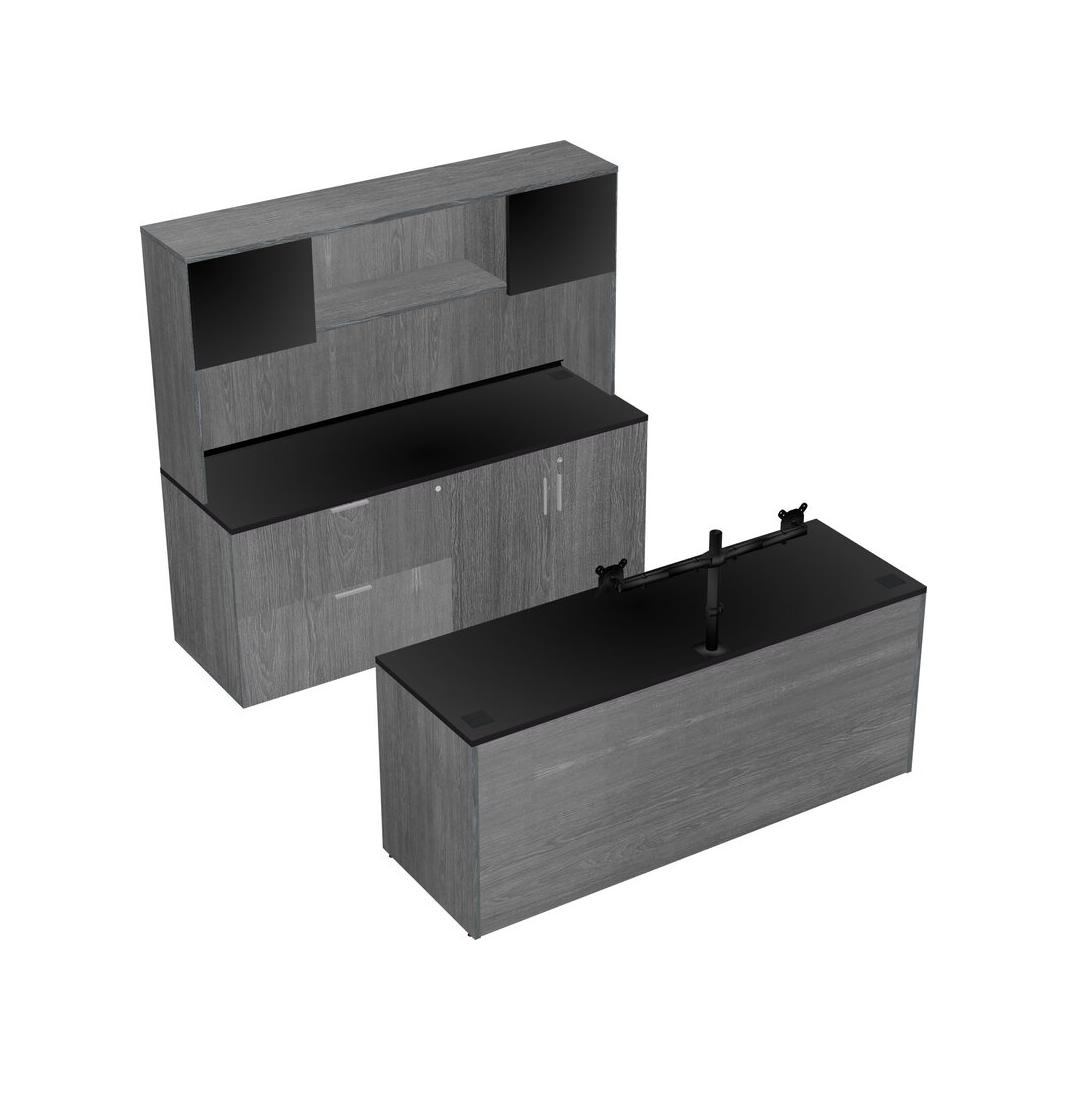 Black Office Parallel Desk With Lateral Storage Combo + Hutch + Monitor Arm (double Arms)