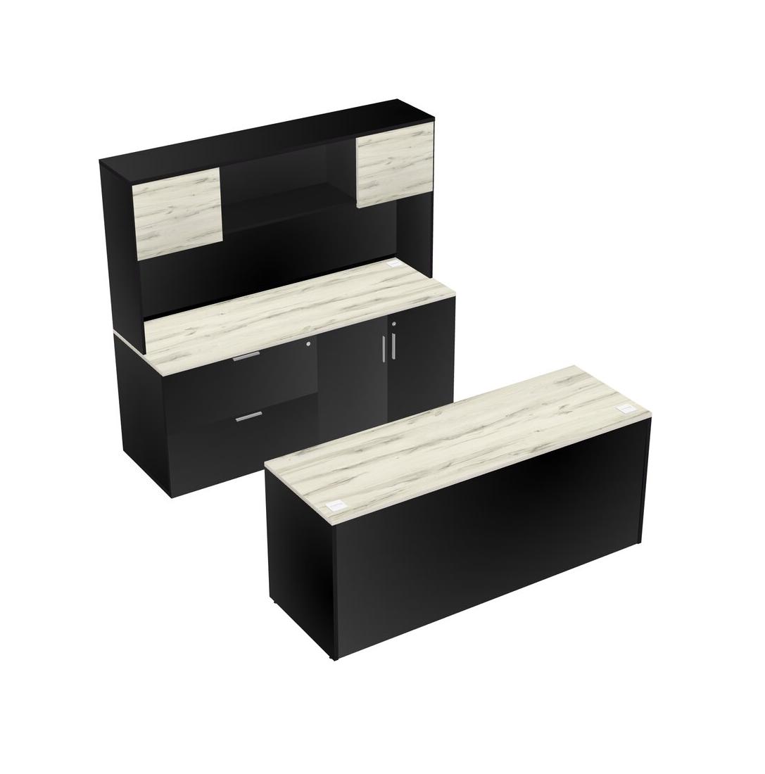 Heinne Holz Office Parallel Desk With Lateral Storage Combo + Wooden Mobile Drawers + Hutch