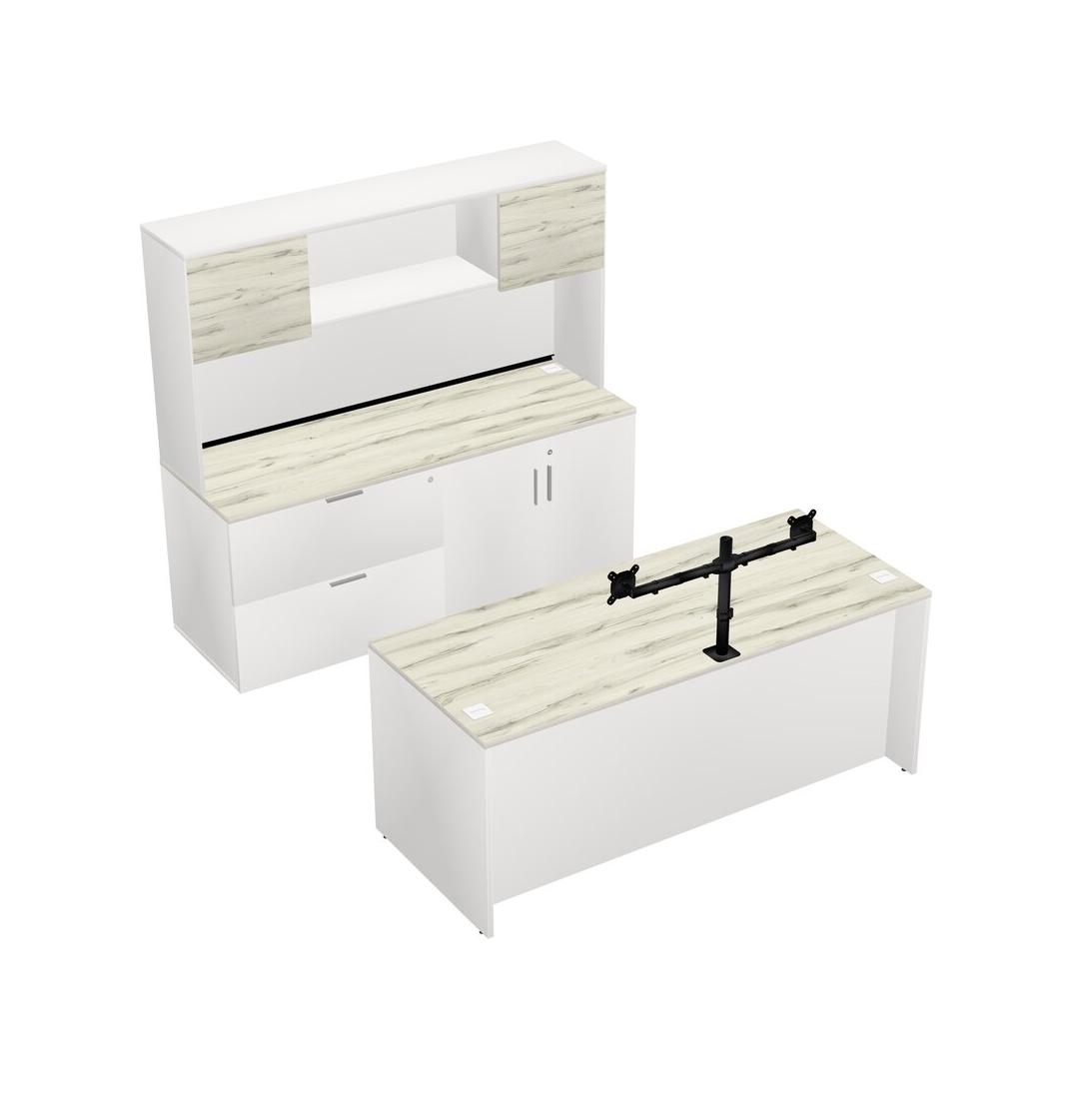 Heinne Holz Office Parallel Desk With Lateral Storage Combo + Hutch + Monitor Arm (double Arms)