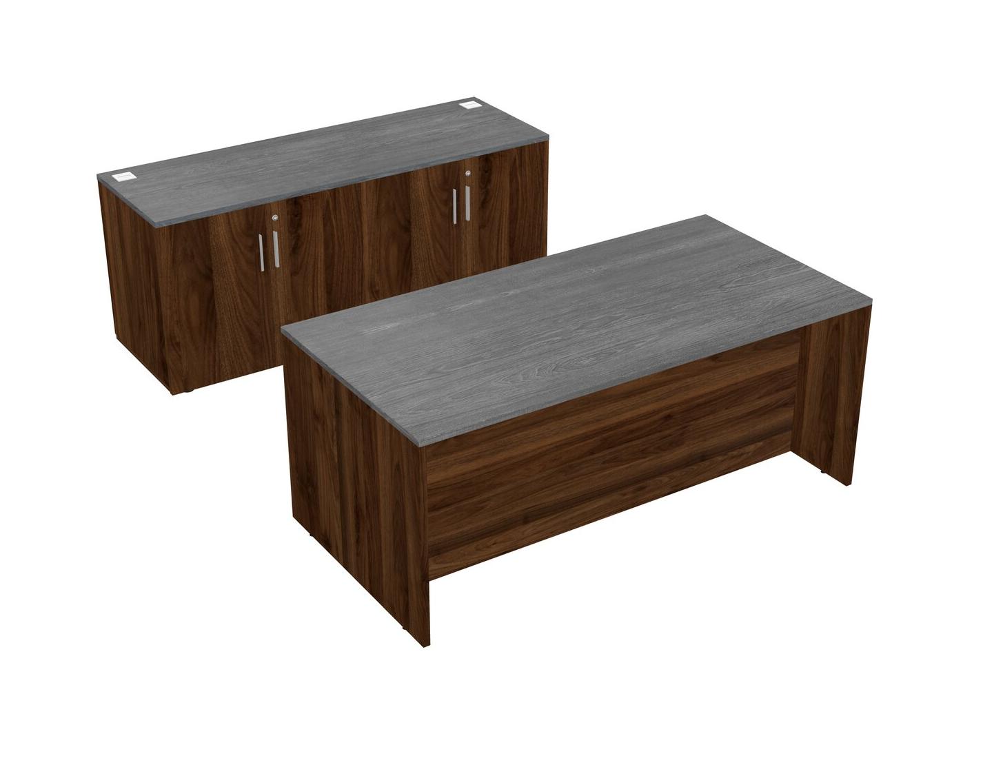 Grey Office Parallel Desk With Storage Cabinet + Wooden Mobile Drawers