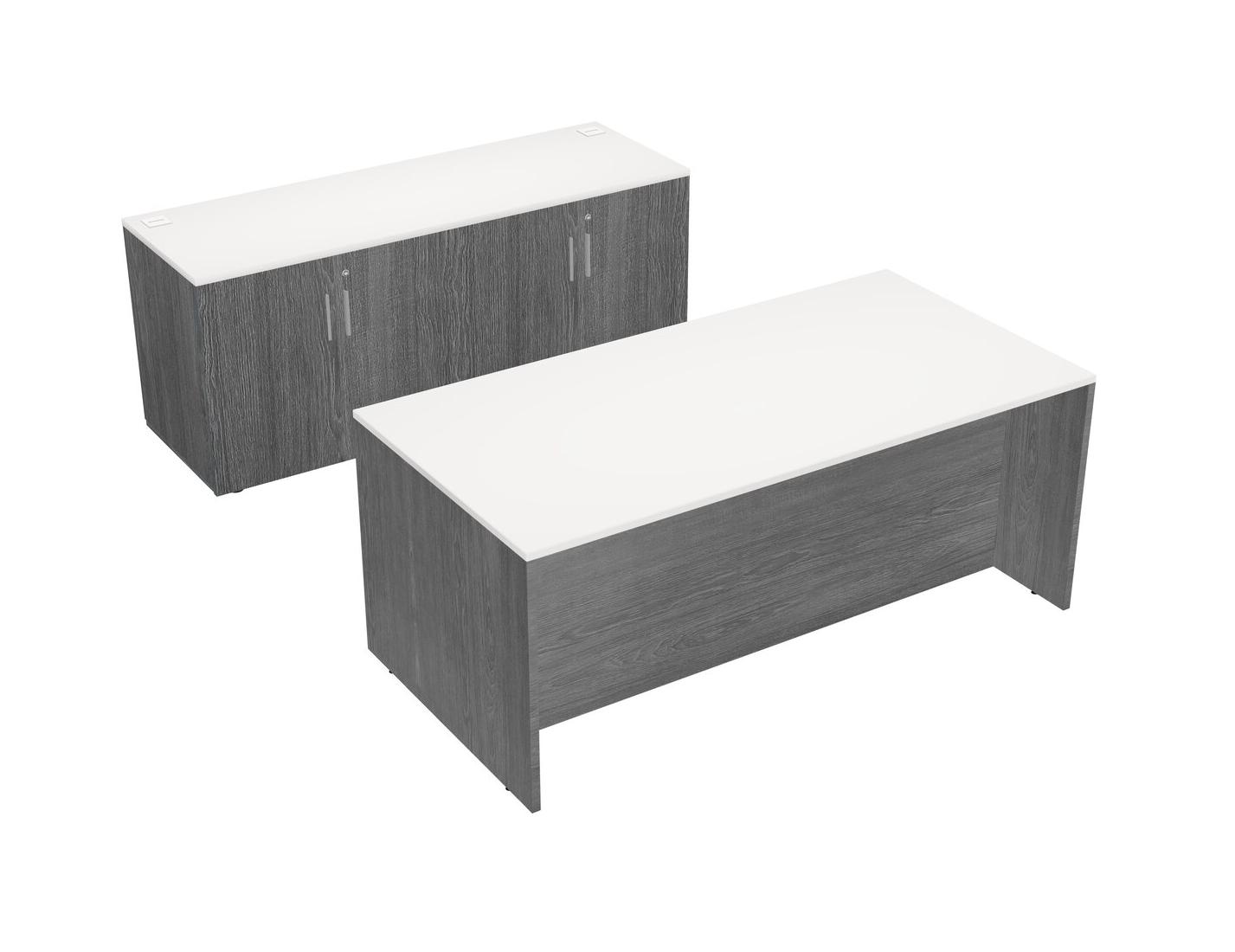 White Office Parallel Desk With Storage Cabinet + Wooden Mobile Drawers