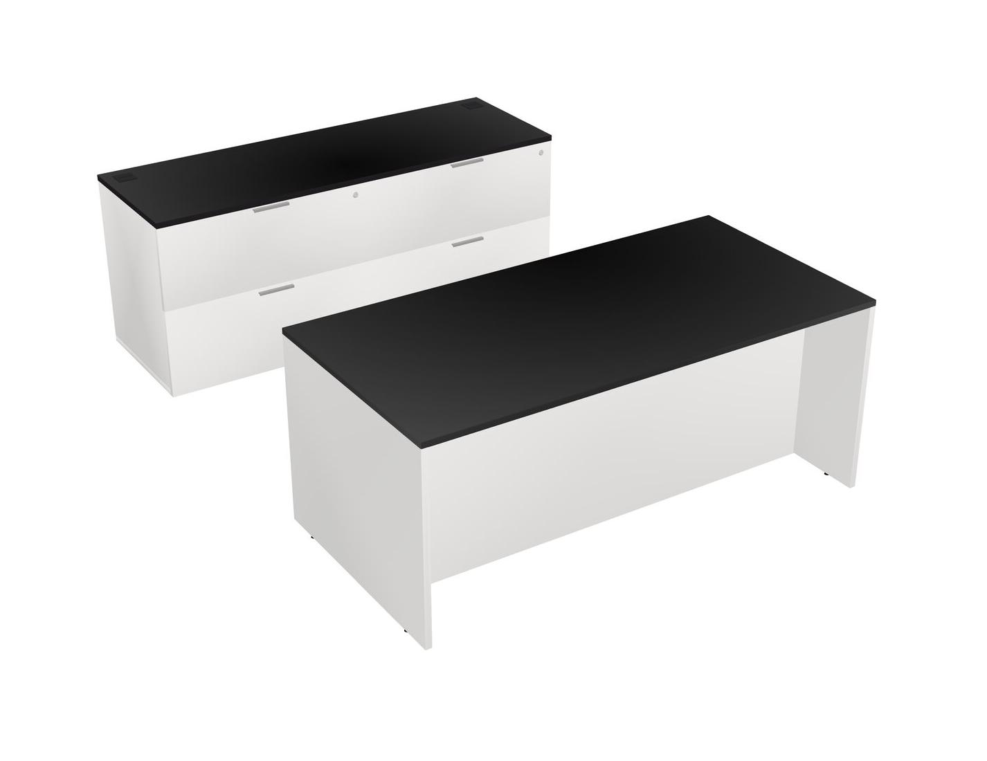 Black Office Parallel Desk With Lateral File Cabinet + Wooden Mobile Drawers