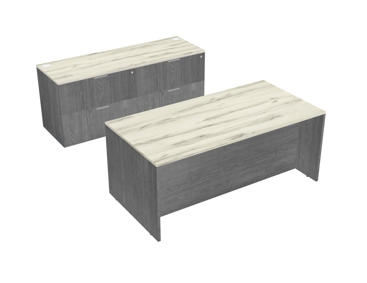 Heinne Holz Office Parallel Desk With Lateral File Cabinet + Wooden Mobile Drawers