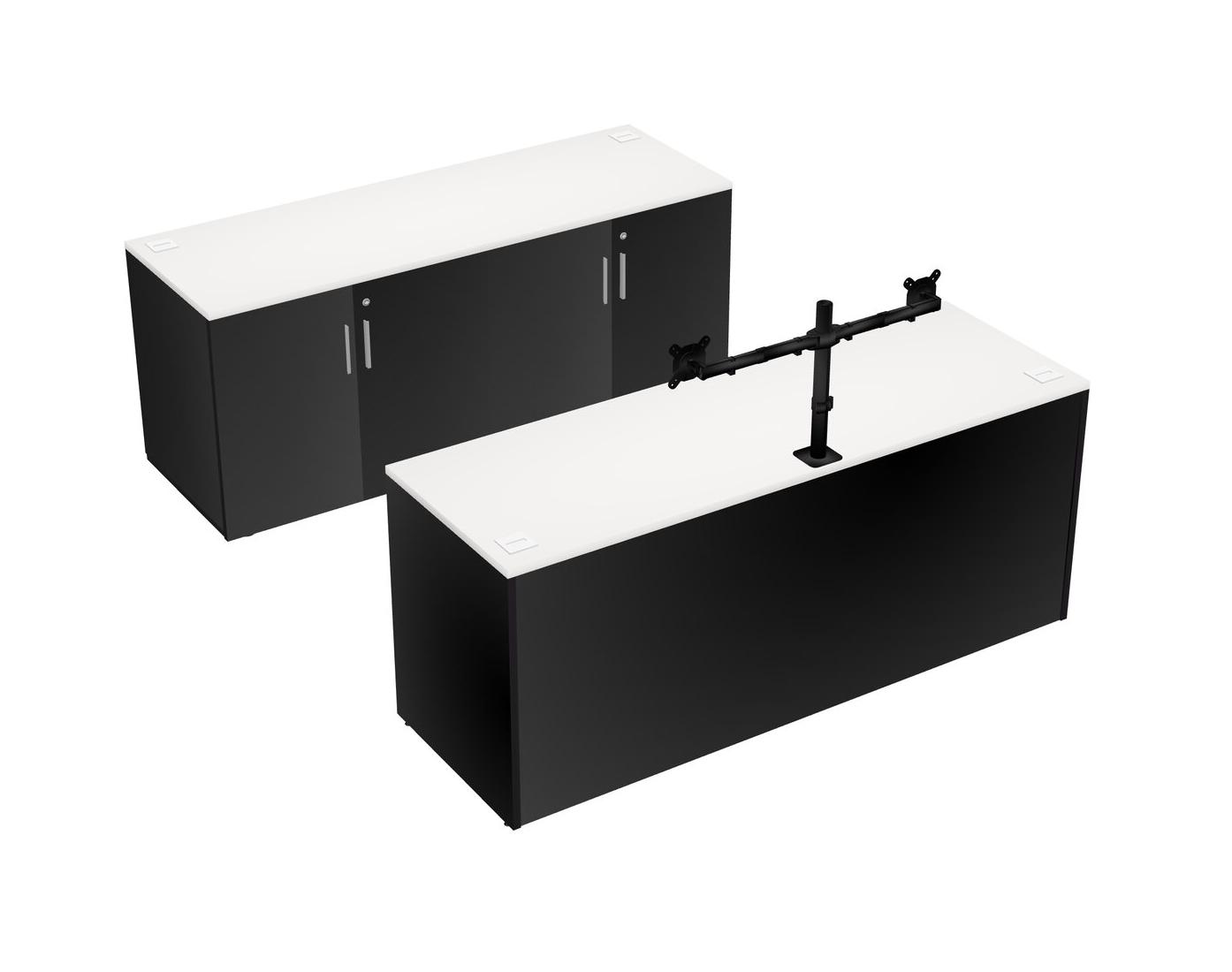 White Office Parallel Desk With Storage Cabinet + Monitor Arm (double Arms)