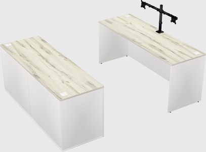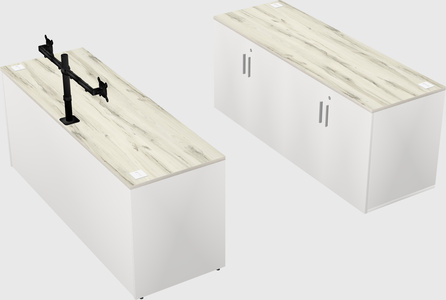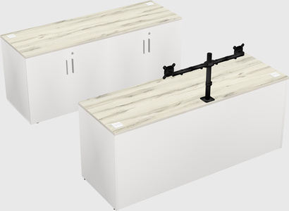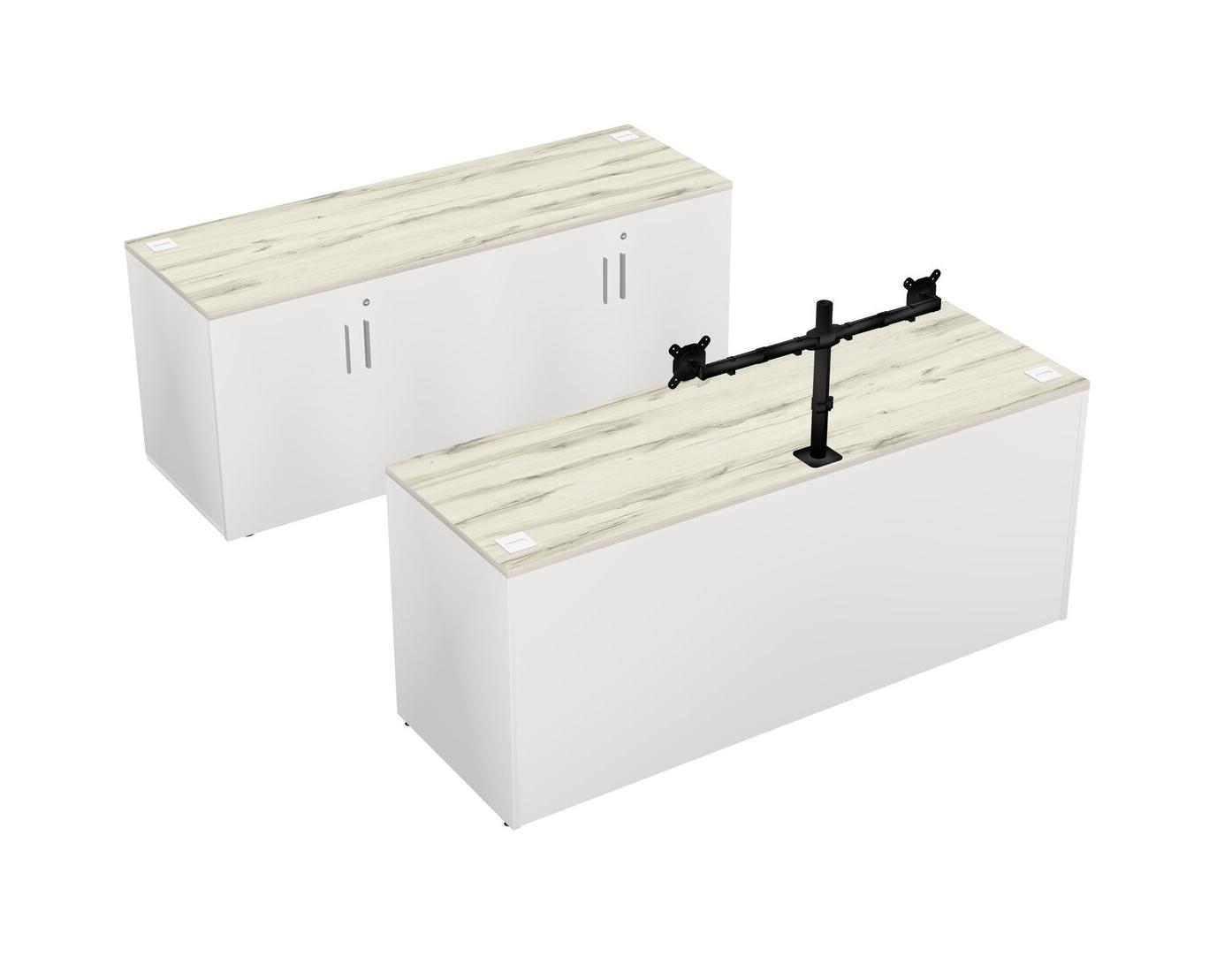 Heinne Holz Office Parallel Desk With Storage Cabinet + Monitor Arm (double Arms)