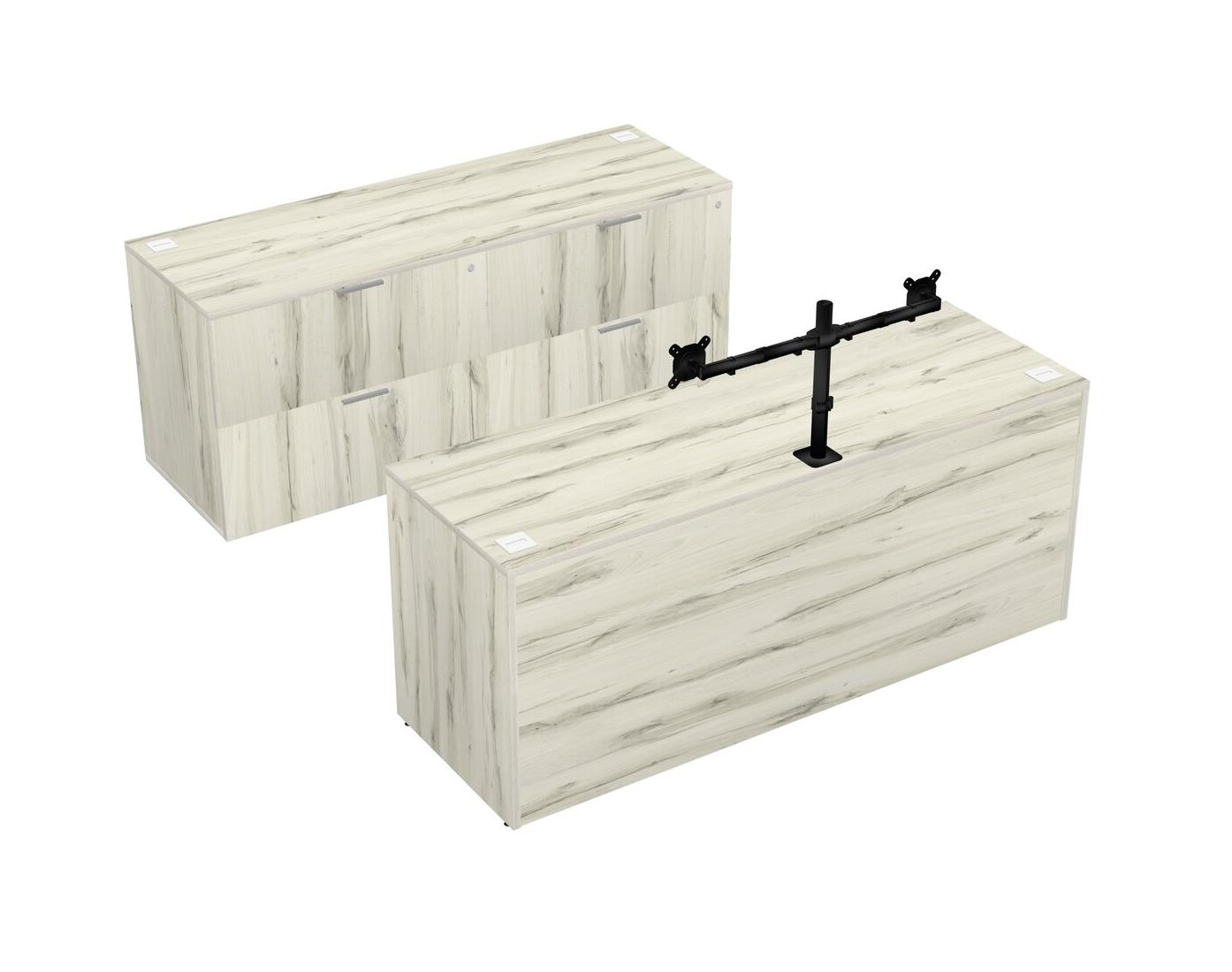 Heinne Holz Office Parallel Desk With Lateral File Cabinet + Monitor Arm (double Arms)